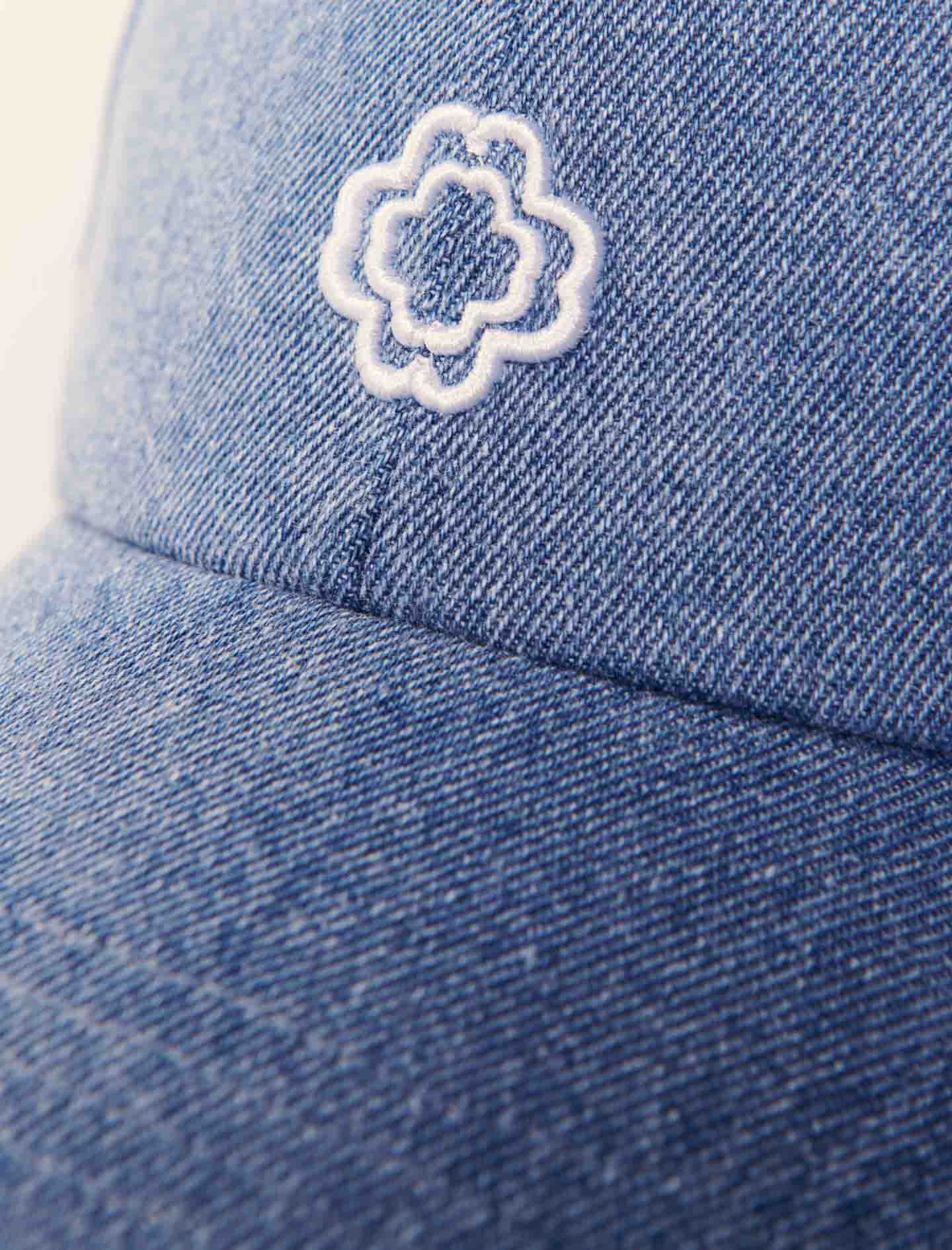 Maje cotton Embellished with Clover embroidery, our signature cap comes in denim.