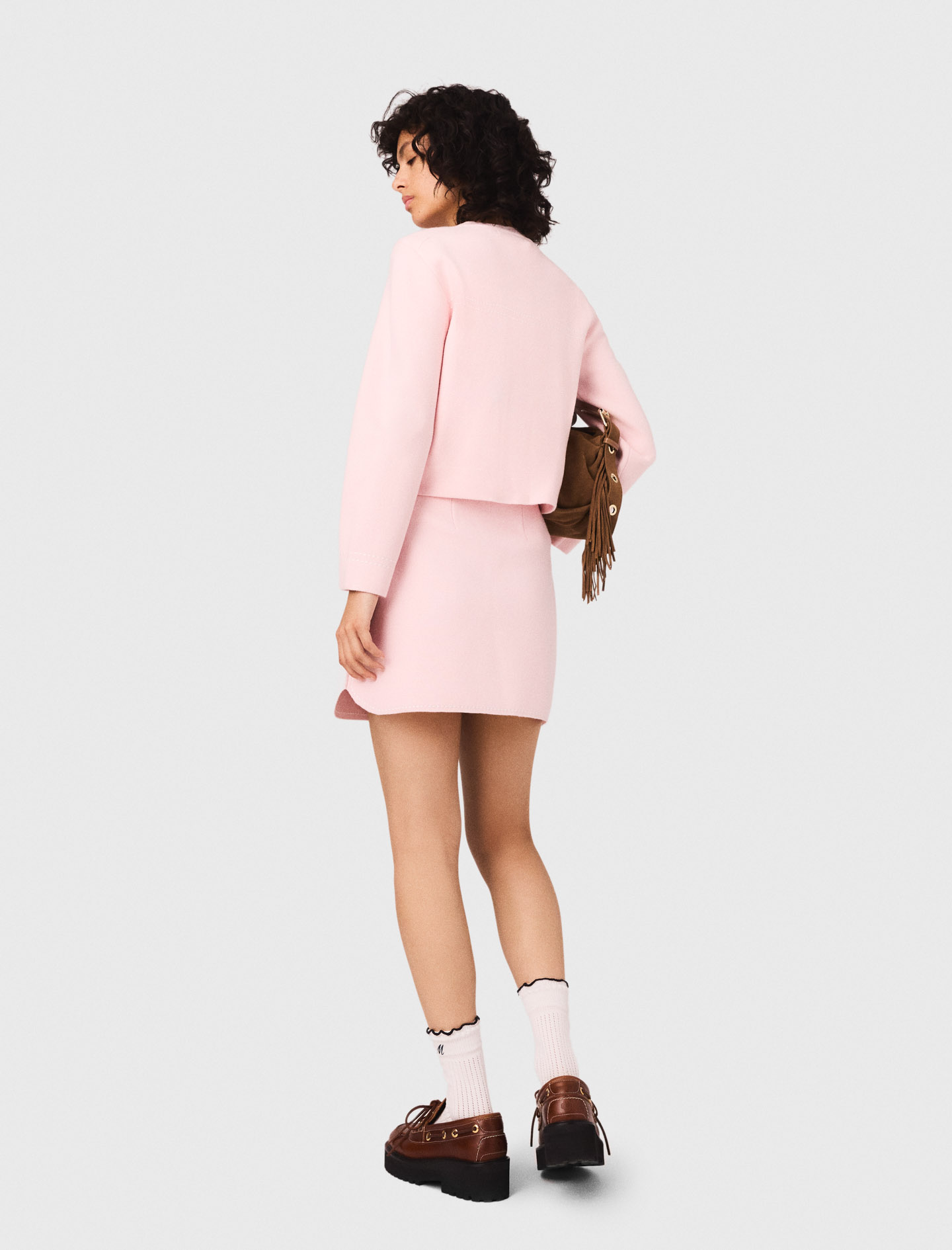 Maje Woman's cotton Short topstitched knit skirt for Fall/Winter, in color Pink / Red