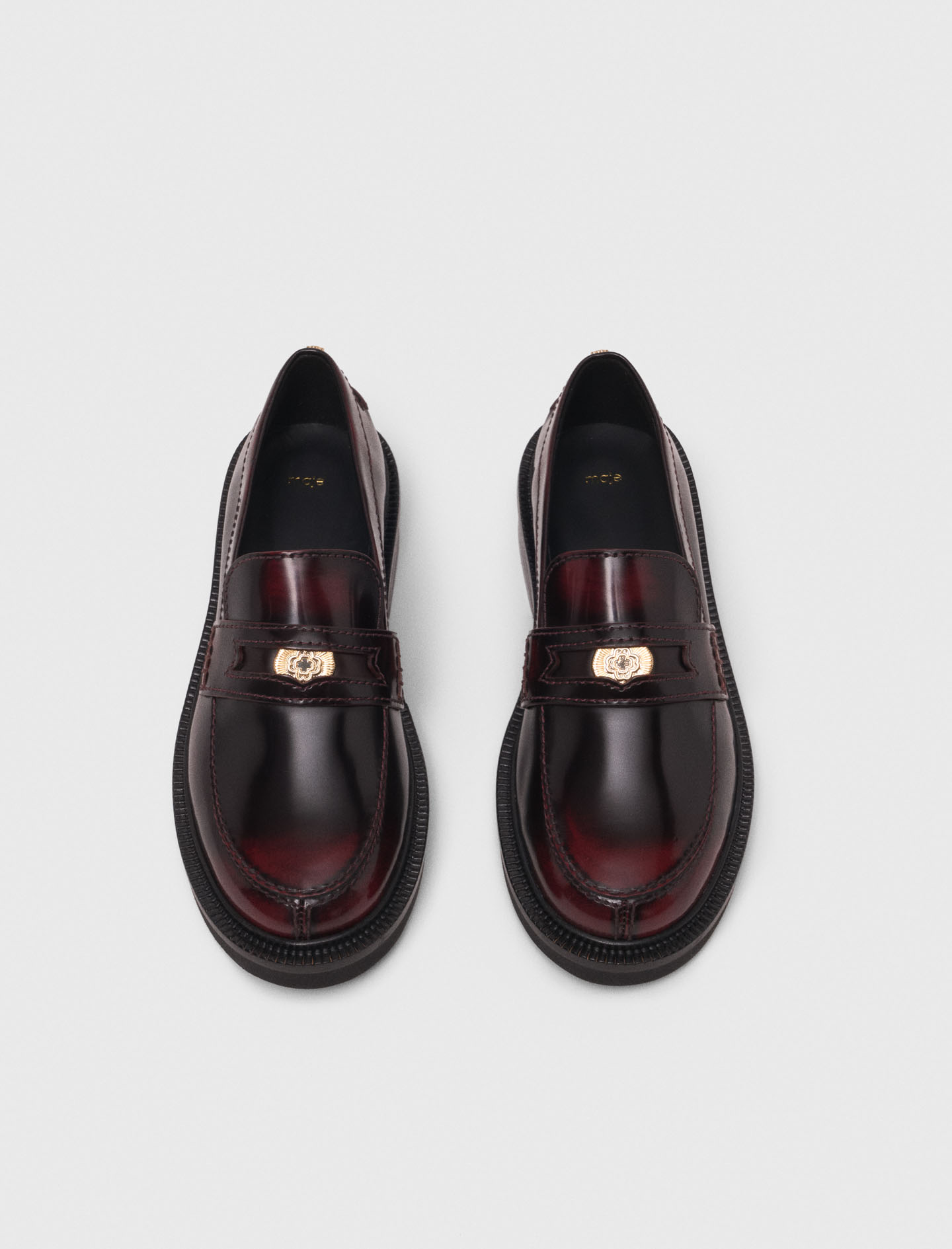 Maje Woman's leather Leather loafers for Fall/Winter, in color Burgundy /