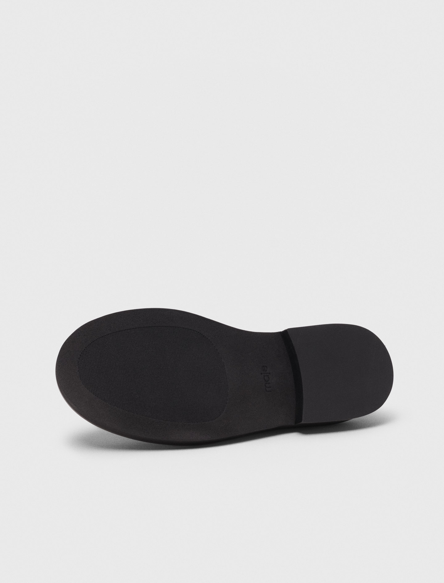 Maje leather Smooth leather loafers Gold Clover medallion hidden under the tongue Flat; smooth, padded sole Heel height: