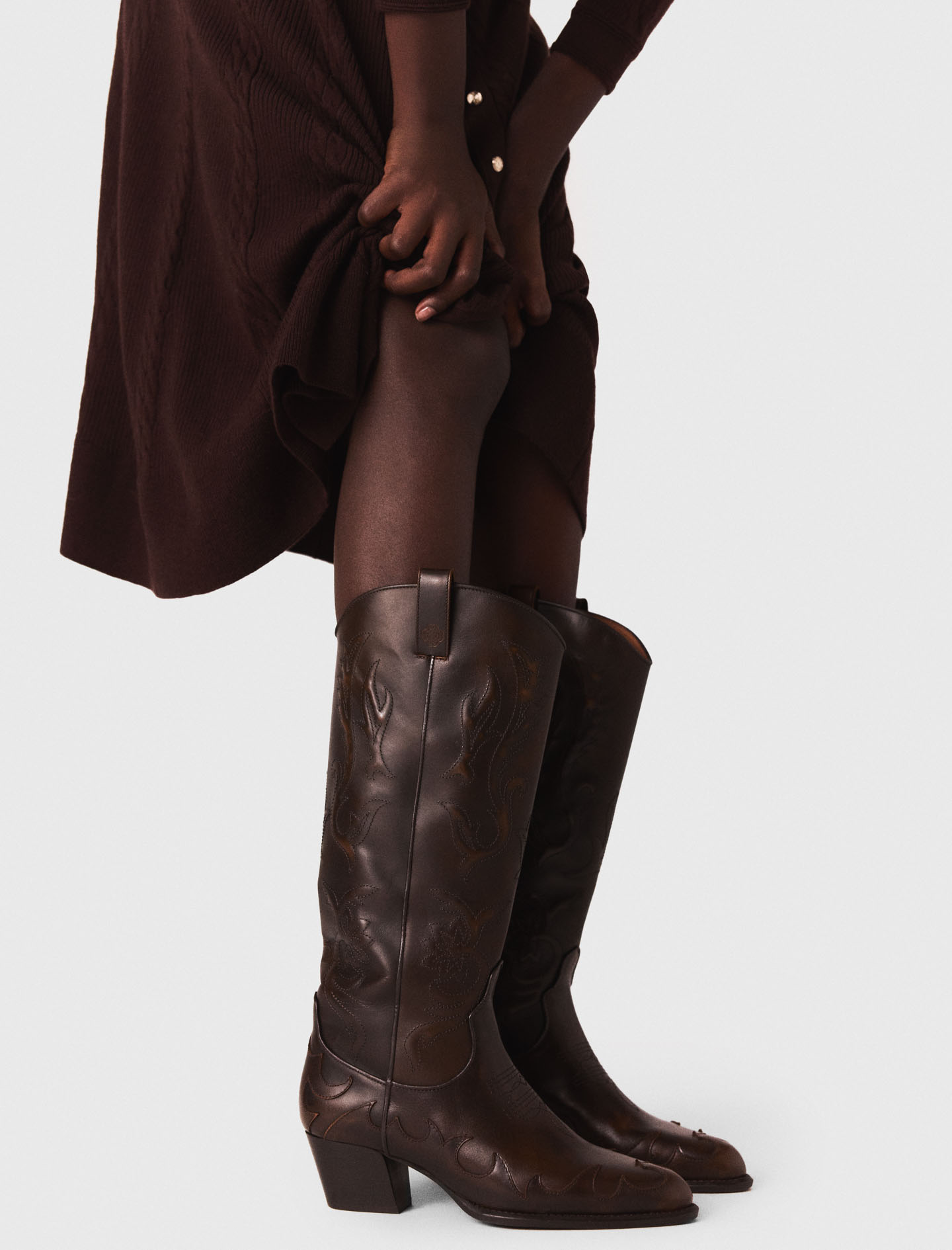 Maje Woman's leather Leather cowboy boots for Fall/Winter, in color brown /