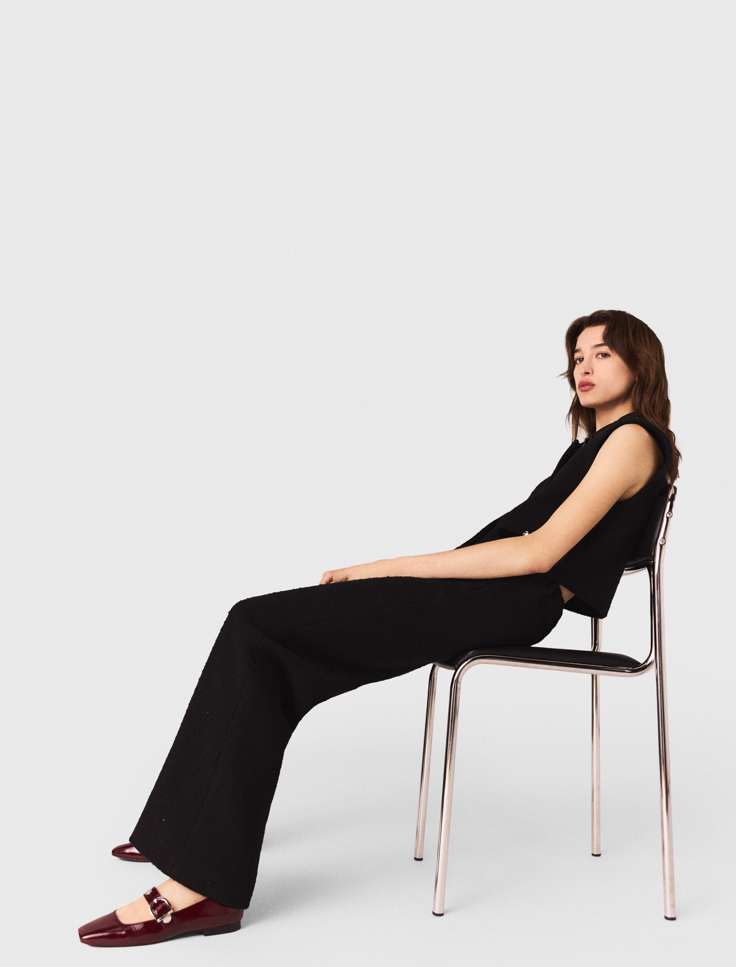 Maje Woman's polyester Tweed trousers for Fall/Winter, in color Black / Black