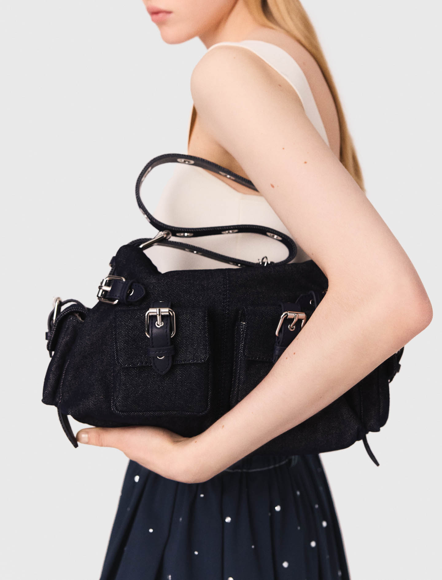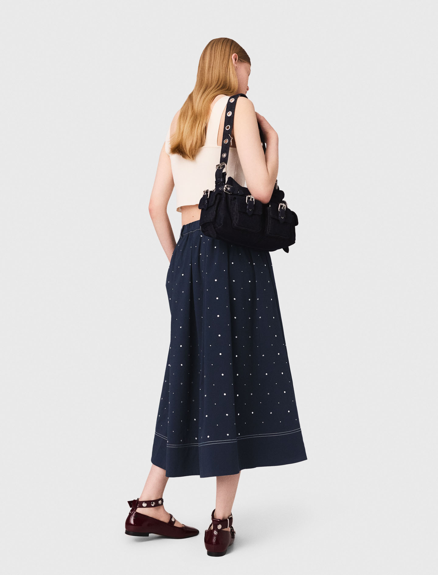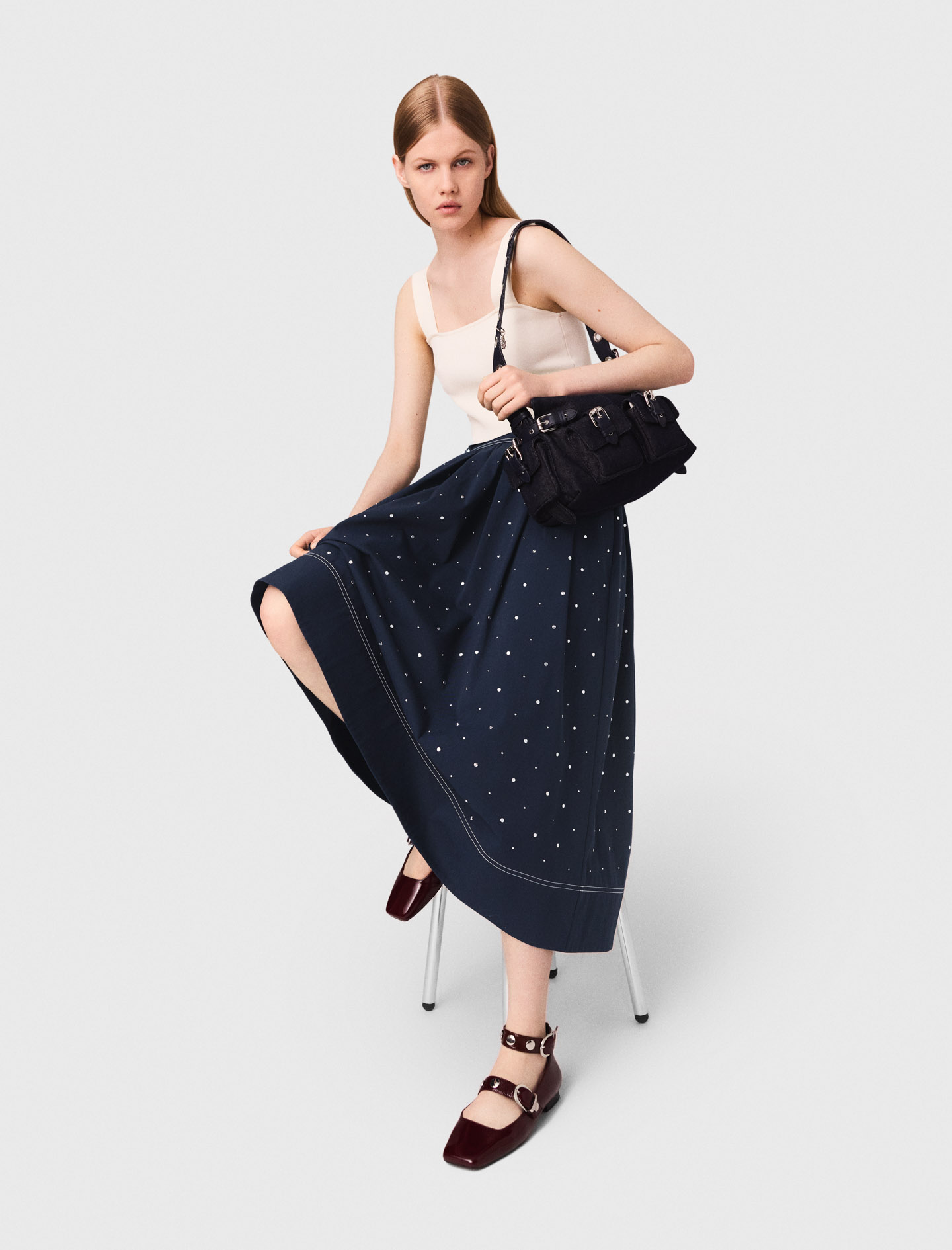 Maje Woman's cotton Studded flared cotton skirt for Fall/Winter, in color Navy / Blue