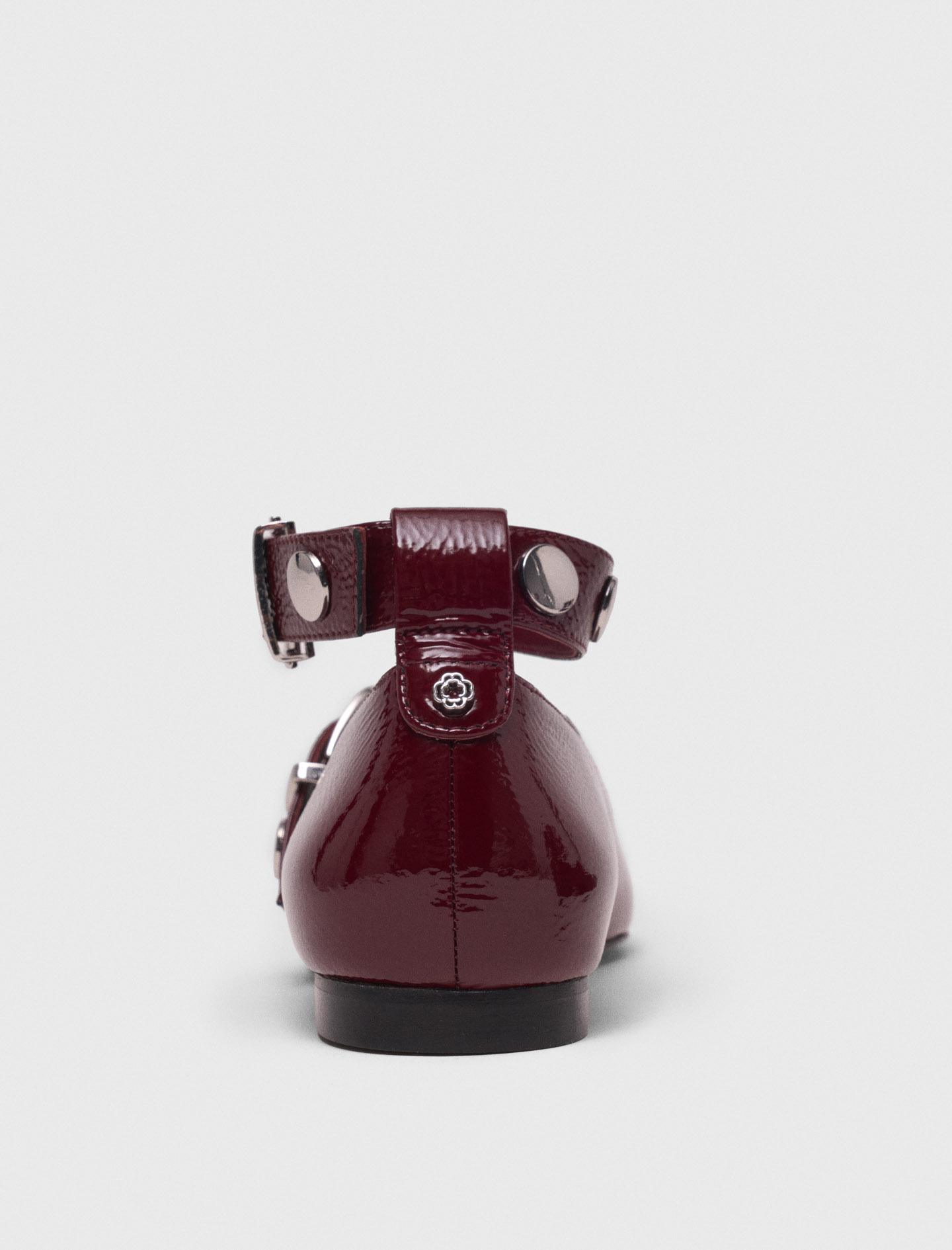 Maje Woman's leather Studded leather Mary Jane flats for Fall/Winter, in color Burgundy /