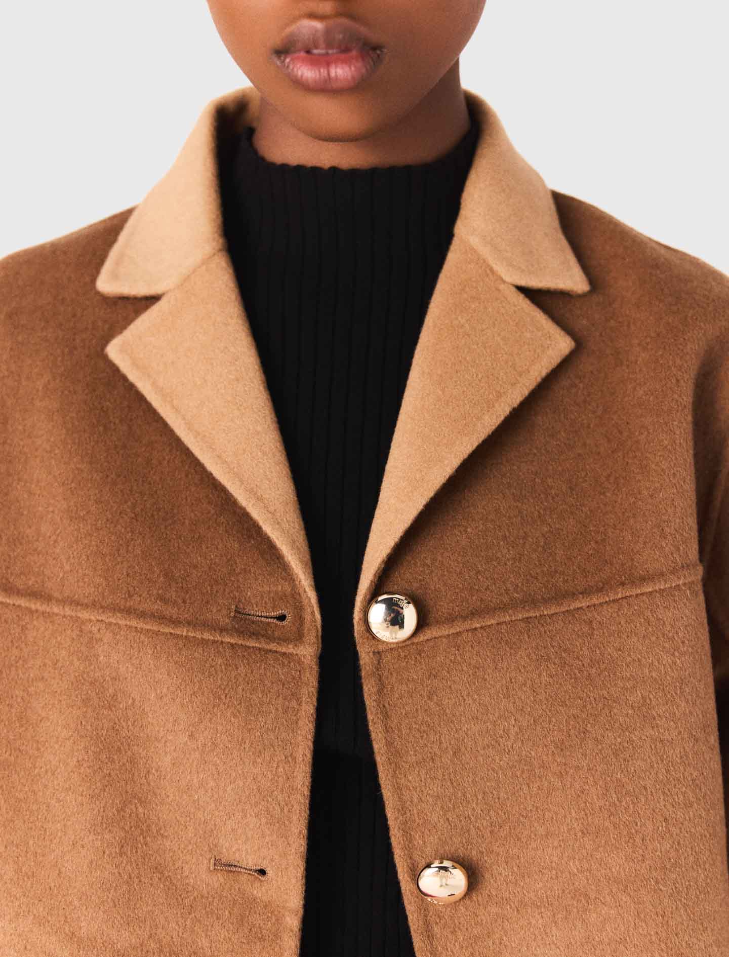 Maje wool Short double-faced coat Contrasting collar Button fastening Between Paris and New York, the wardrobe blends modernity with timeless elegance.