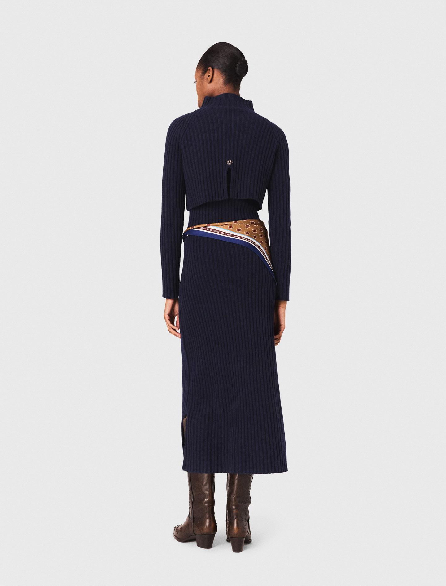 Maje wool Long ribbed knit dress 2-in-