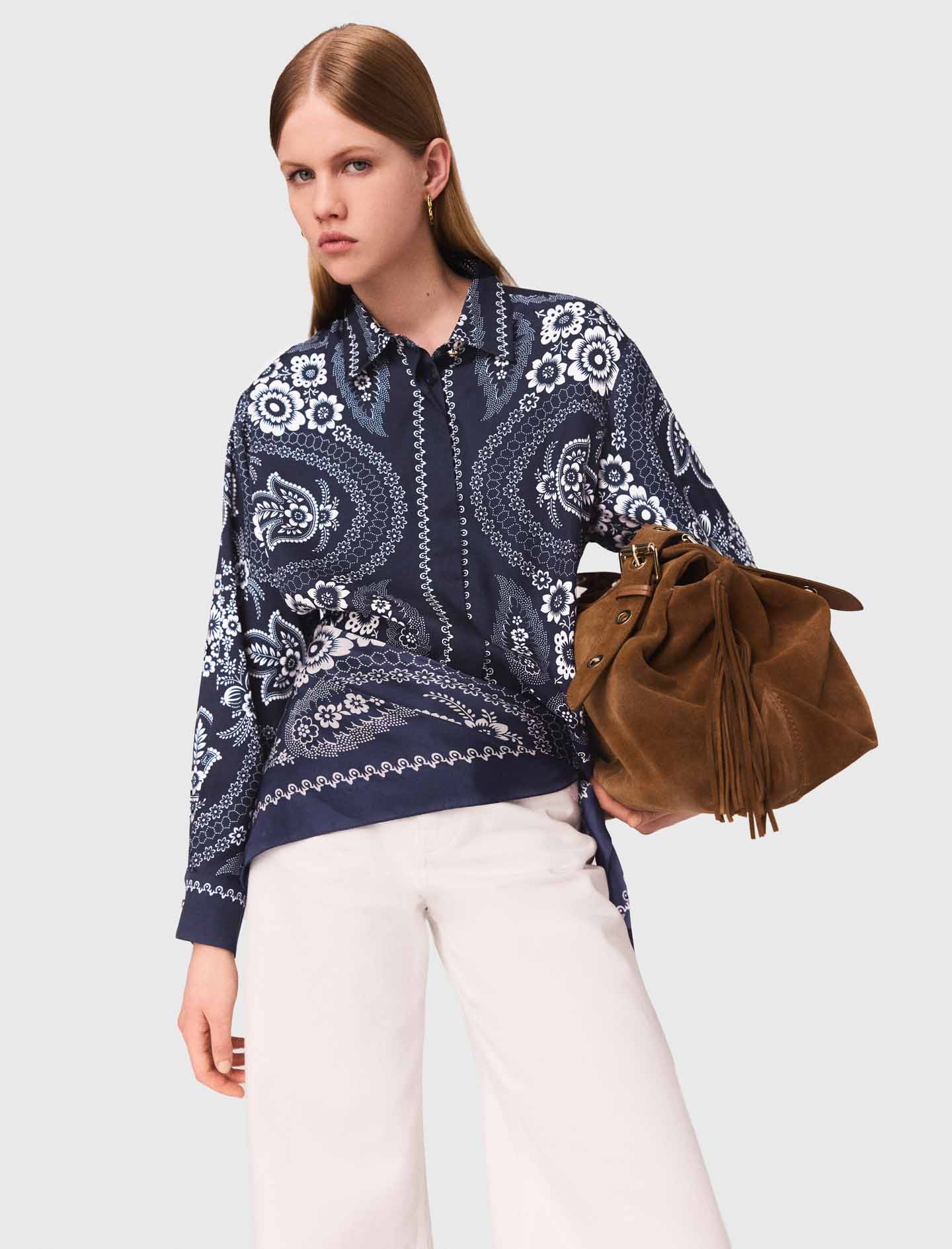 Maje Woman's viscose Bandana printed blouse for Fall/Winter, in color Navy bandana print /