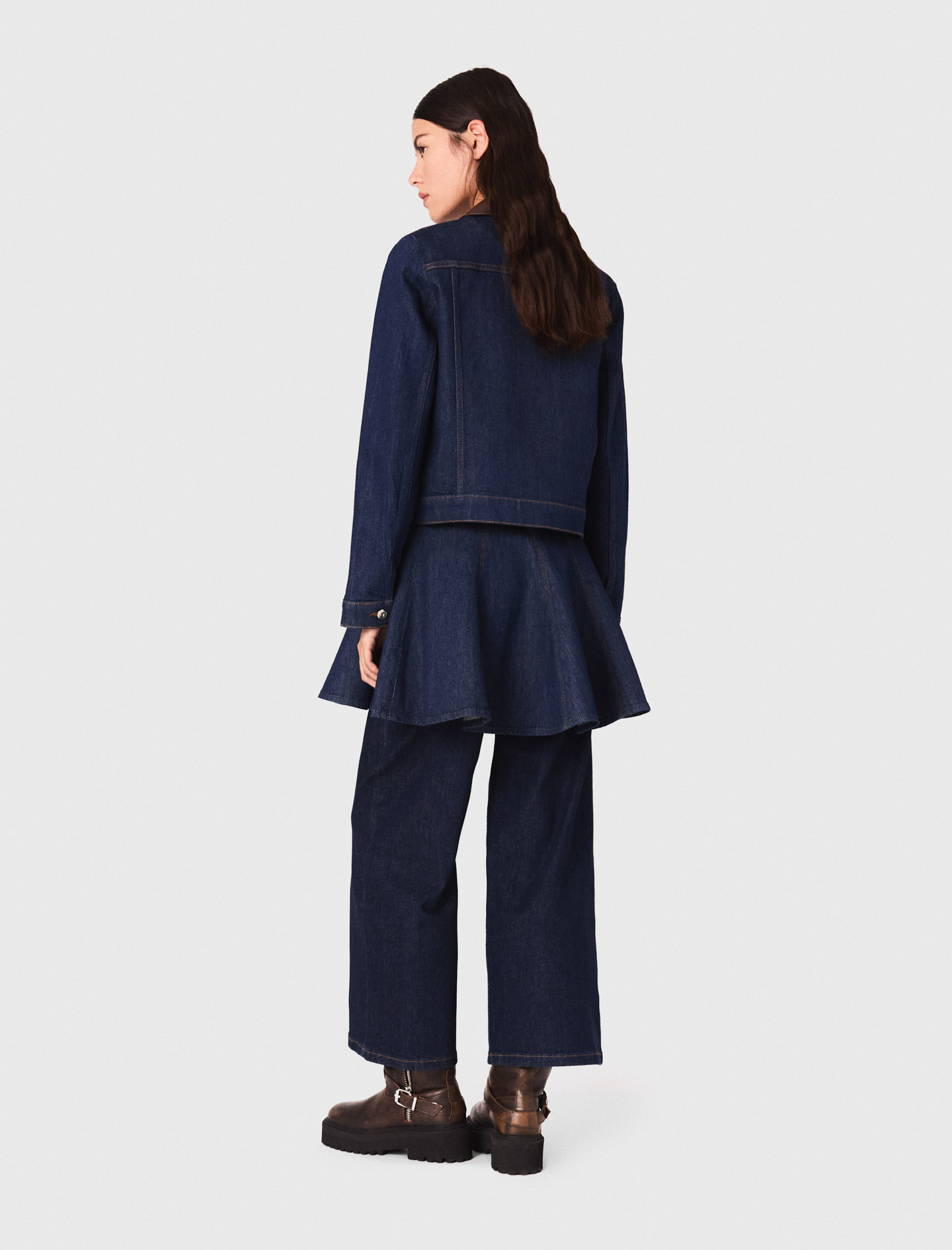 Maje cotton Denim jacket Faux leather collar and pocket details Button fastening Designed for a cropped, boxy fit The wardrobe plays with contrasts and materials to create looks that are both authentic and modern.