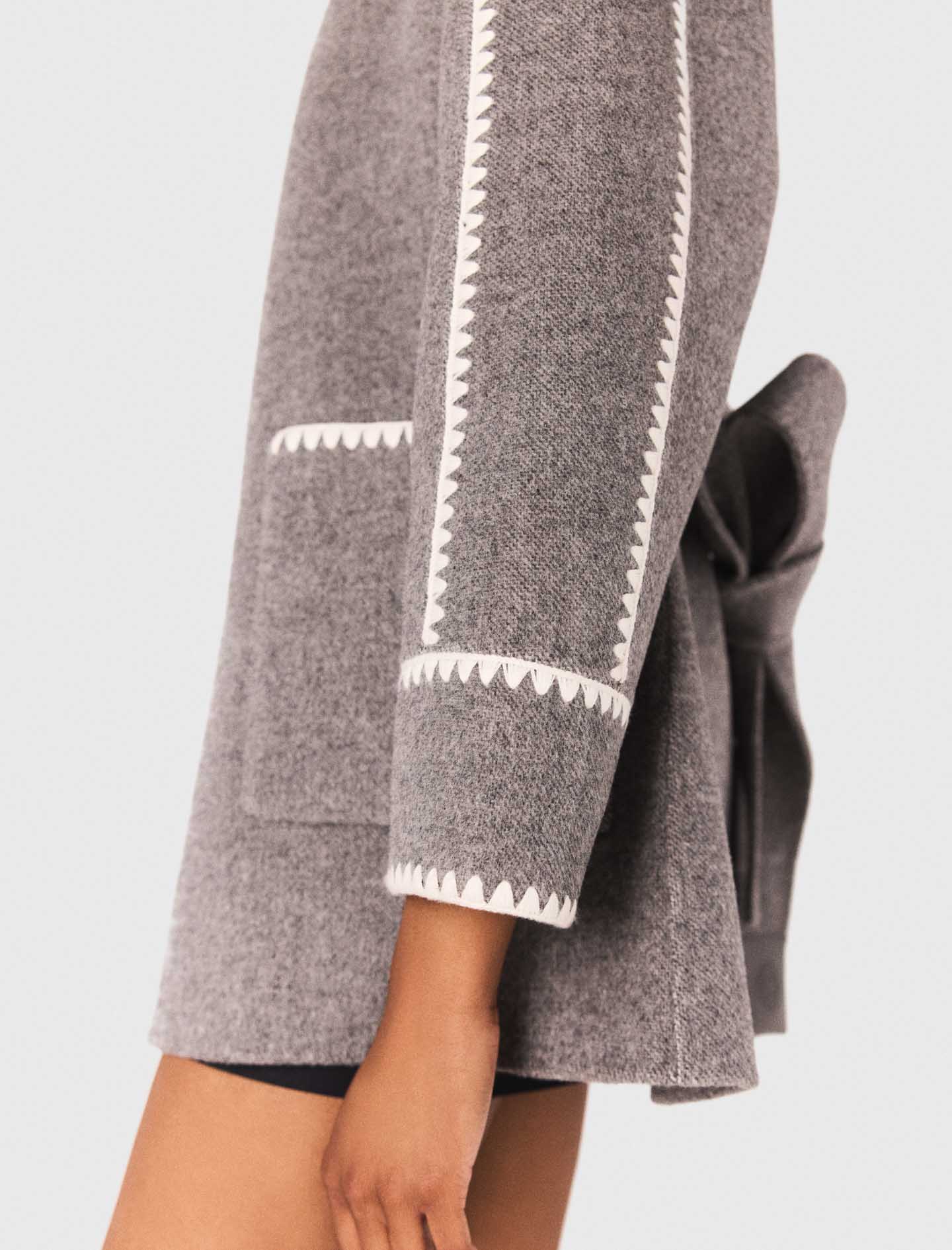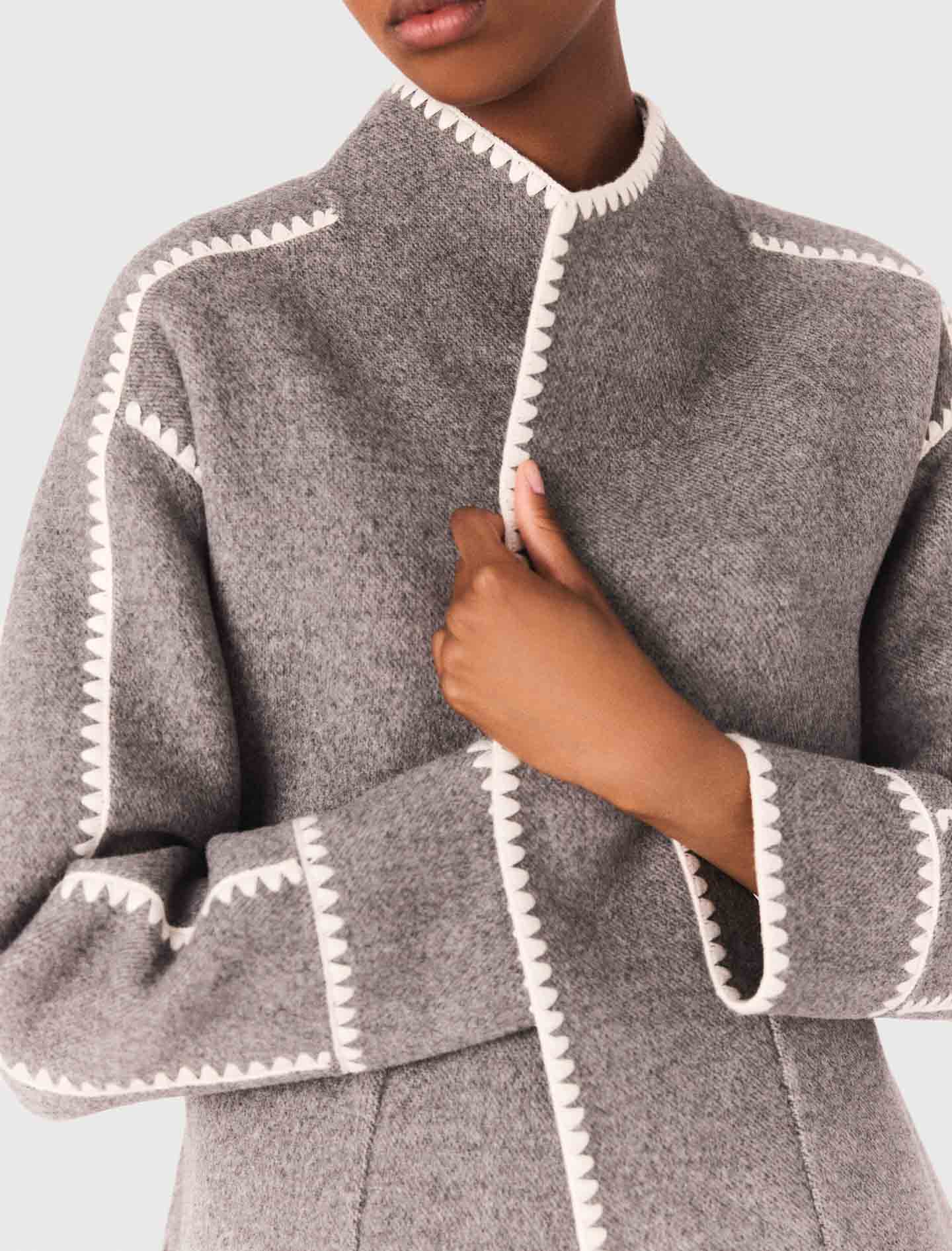 Maje Woman's wool Double-faced coat with trim for Fall/Winter, in color Grey/White /