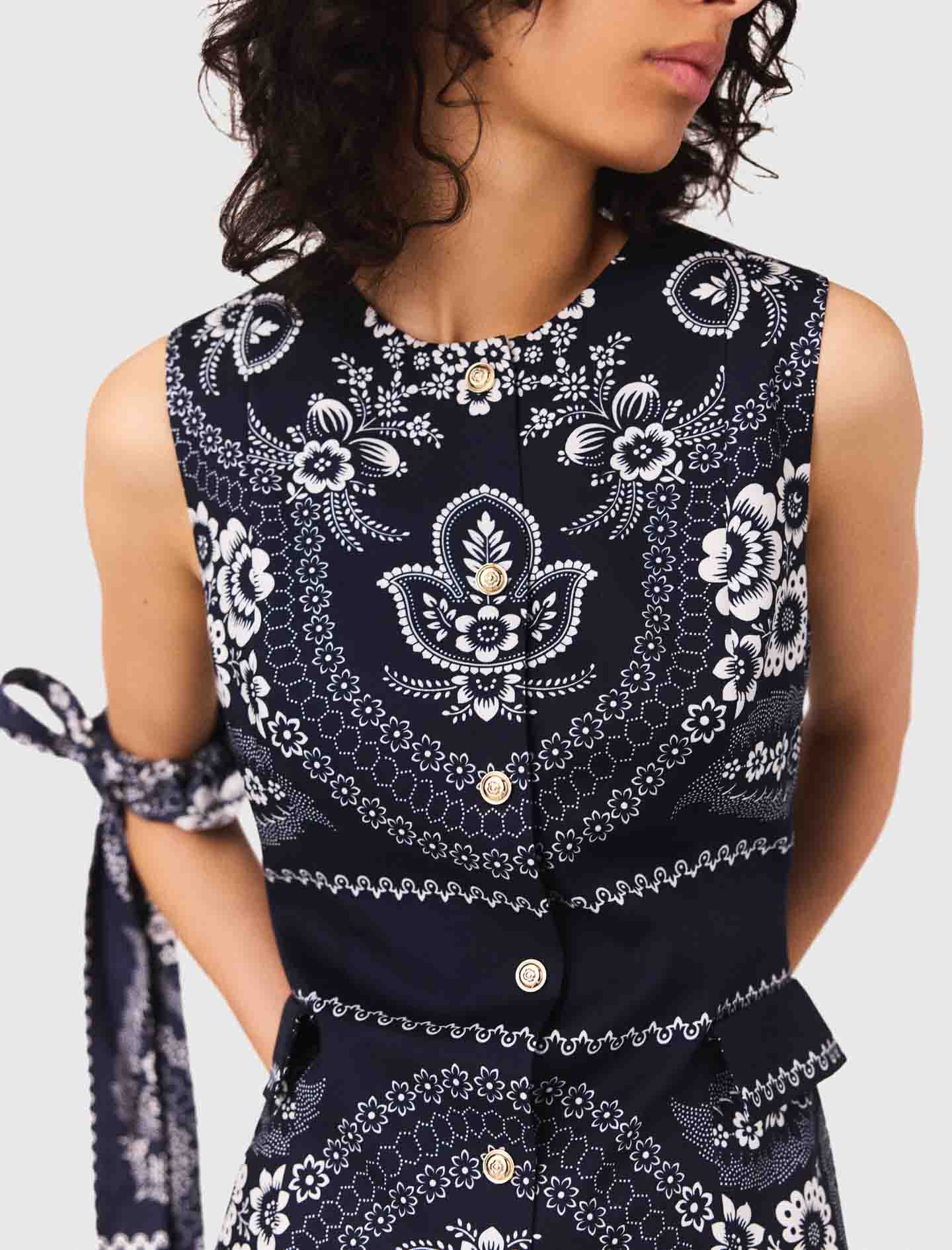 Maje viscose Short floral print dress Round neck and sleeveless Decorative press stud fastening 2 flap pockets Fitted at the waist Designed for a tailored fit Maje offers a collection of modern and elegant pieces to carry you through the seasons with ease.