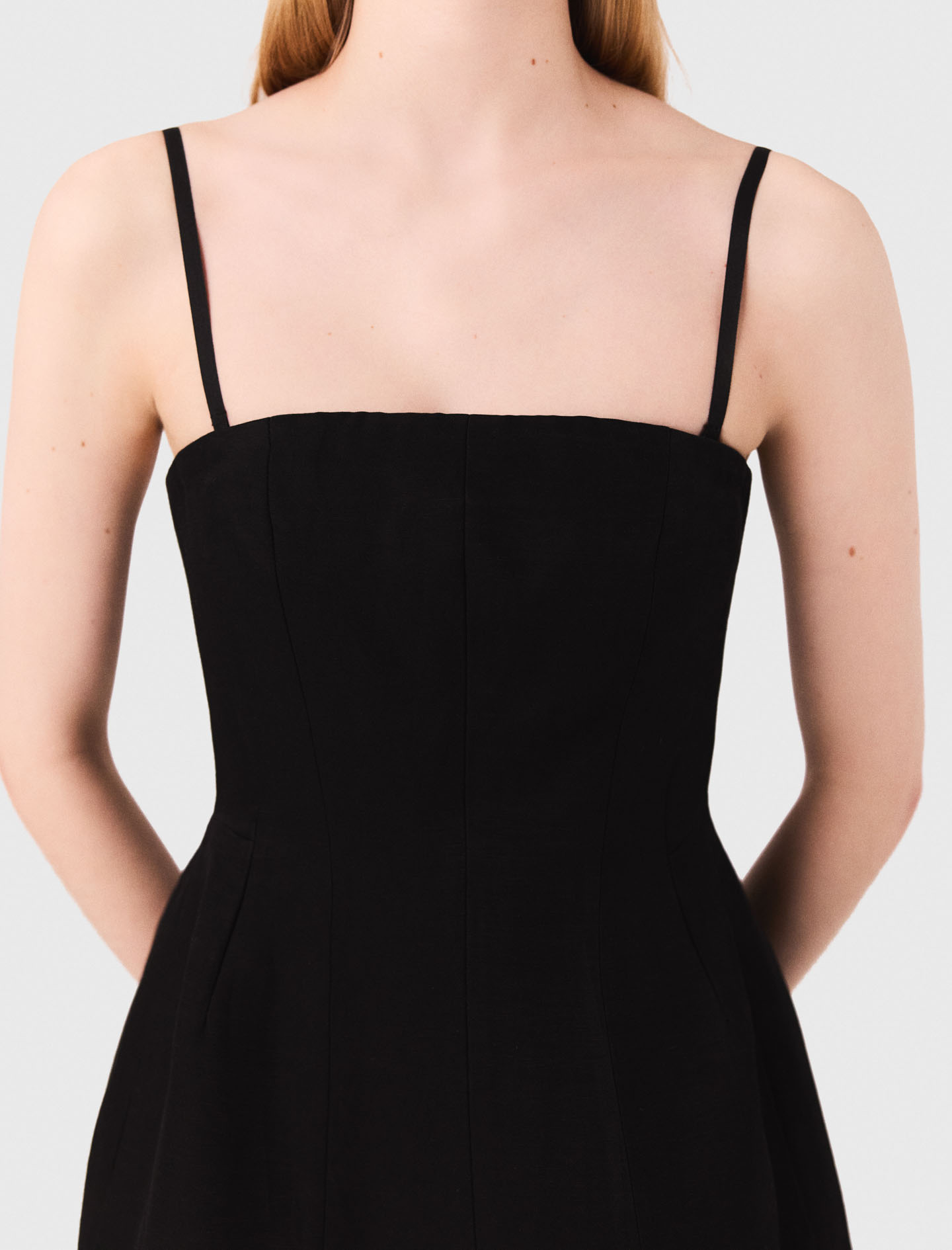 Maje linen Short linen strapless dress Non-slip silicone band Removable and adjustable straps Fitted waist and flared skirt Hand-smocked back and zip fastening Designed for a tailored fit This collection, inspired by the end of summer, evokes a woman between Saint-Tropez and Cassis.