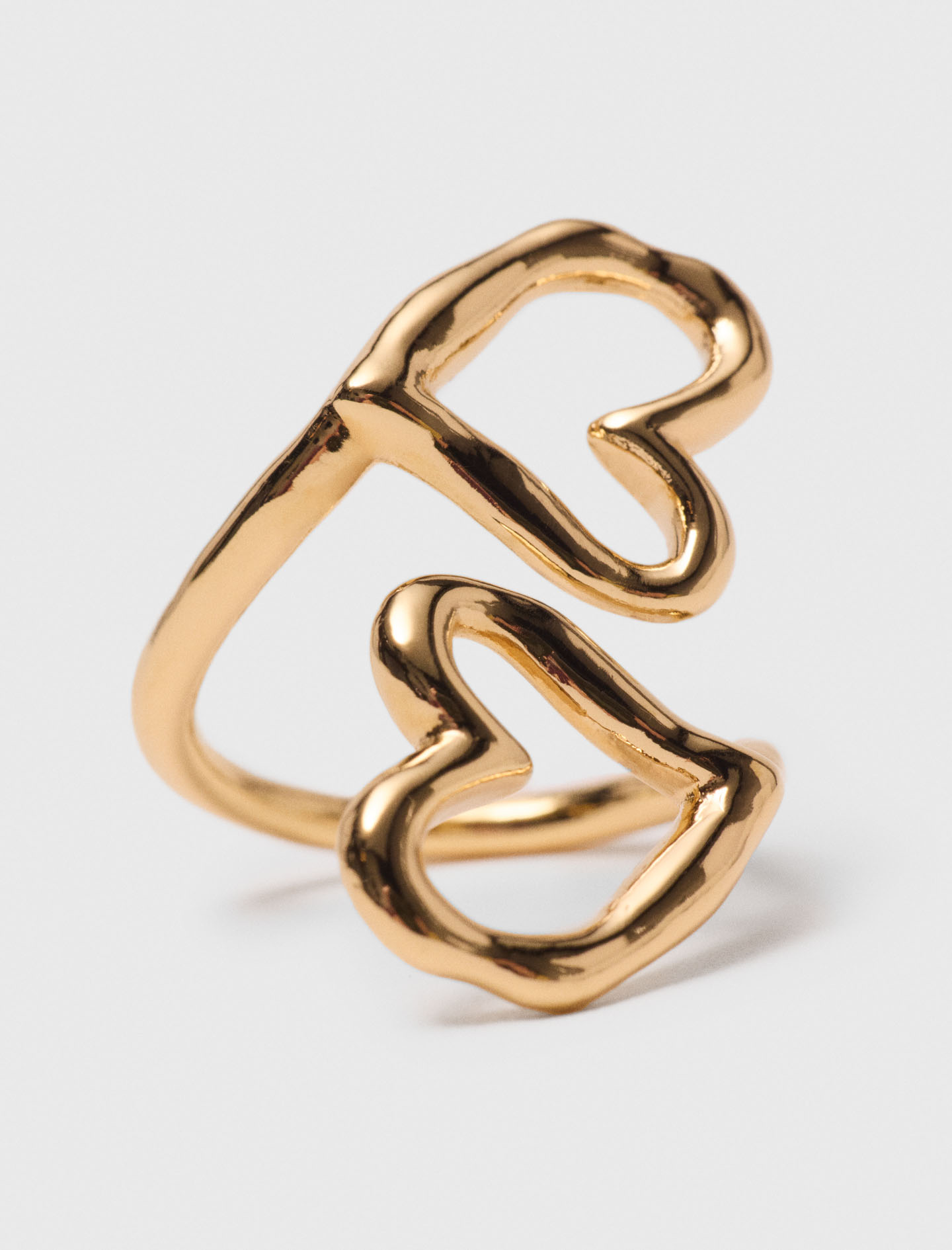 Maje brass Gold-plated double heart ring Criss-cross and open design for a modern effect Delicate ring, ideal for layering with other jewellery As the seasons change, Maje creates accessories imbued with elegance and sophistication to set off your look with style.