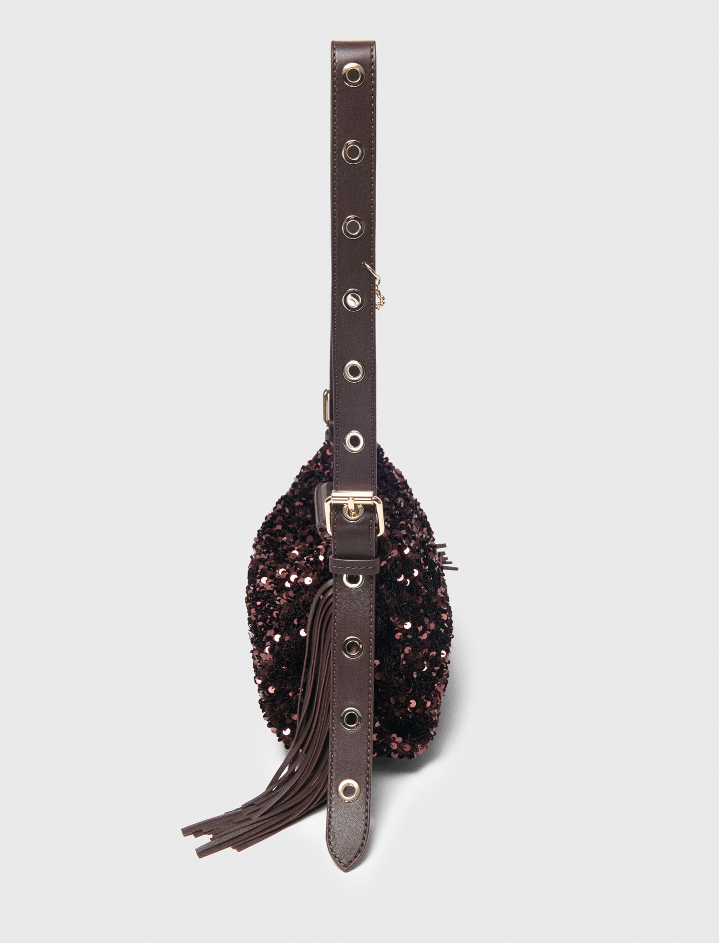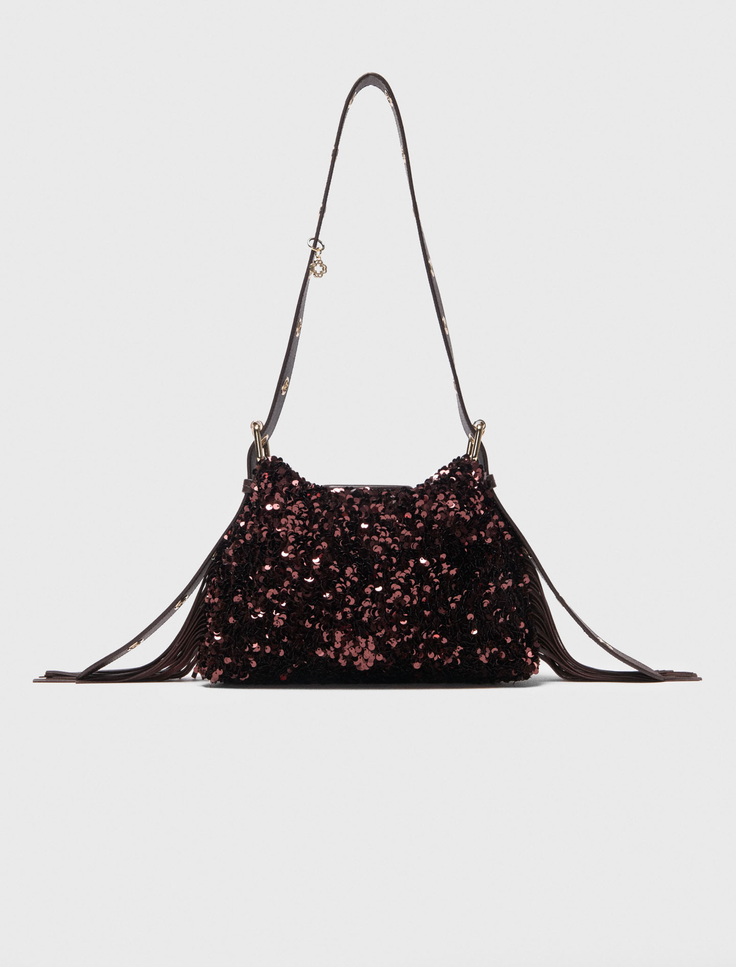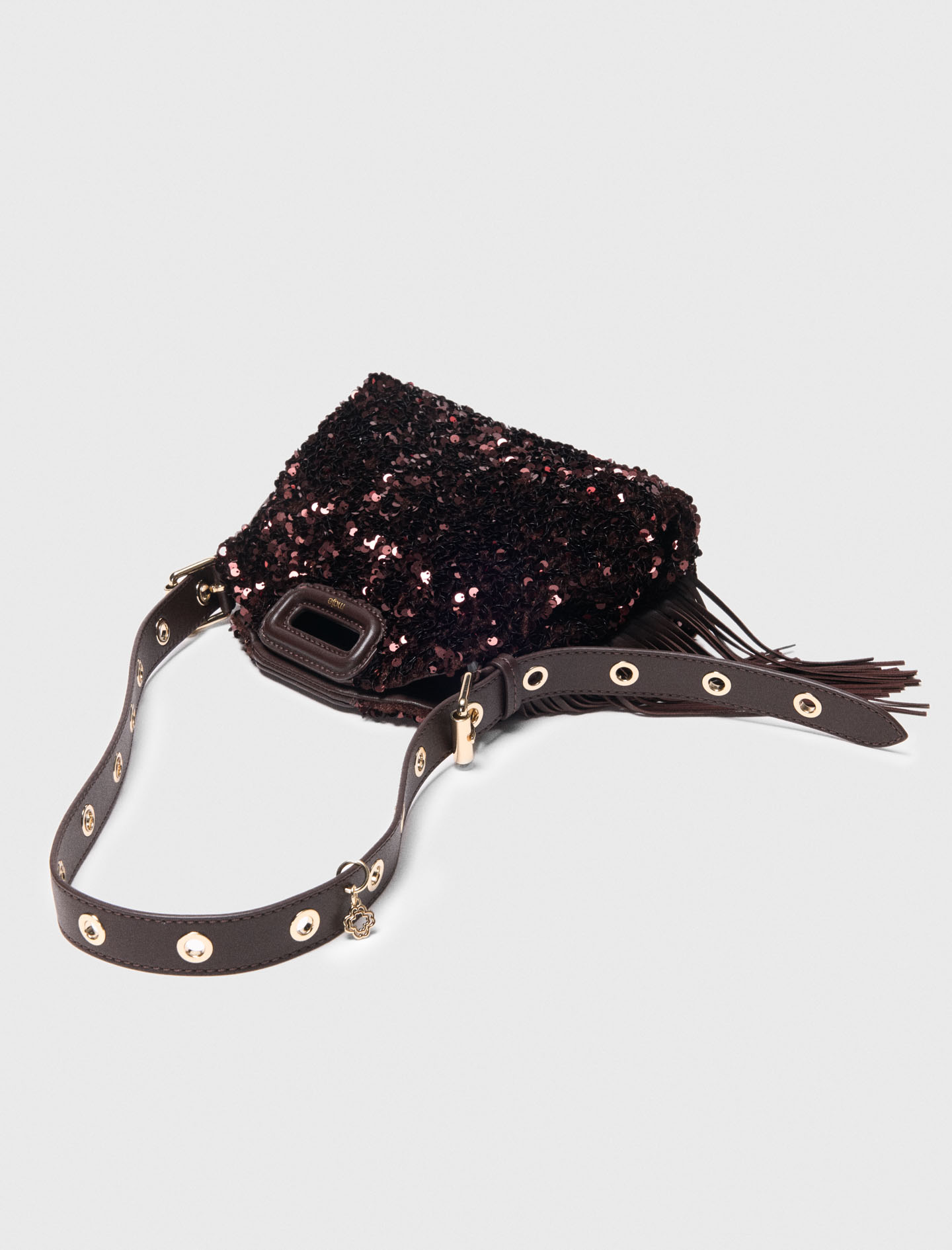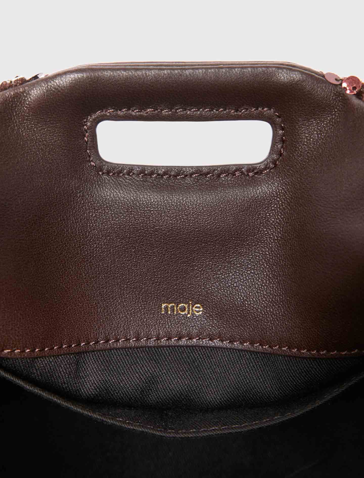 Maje Woman's polyester Miss M mini sequinned bag for Fall/Winter, in color brown /