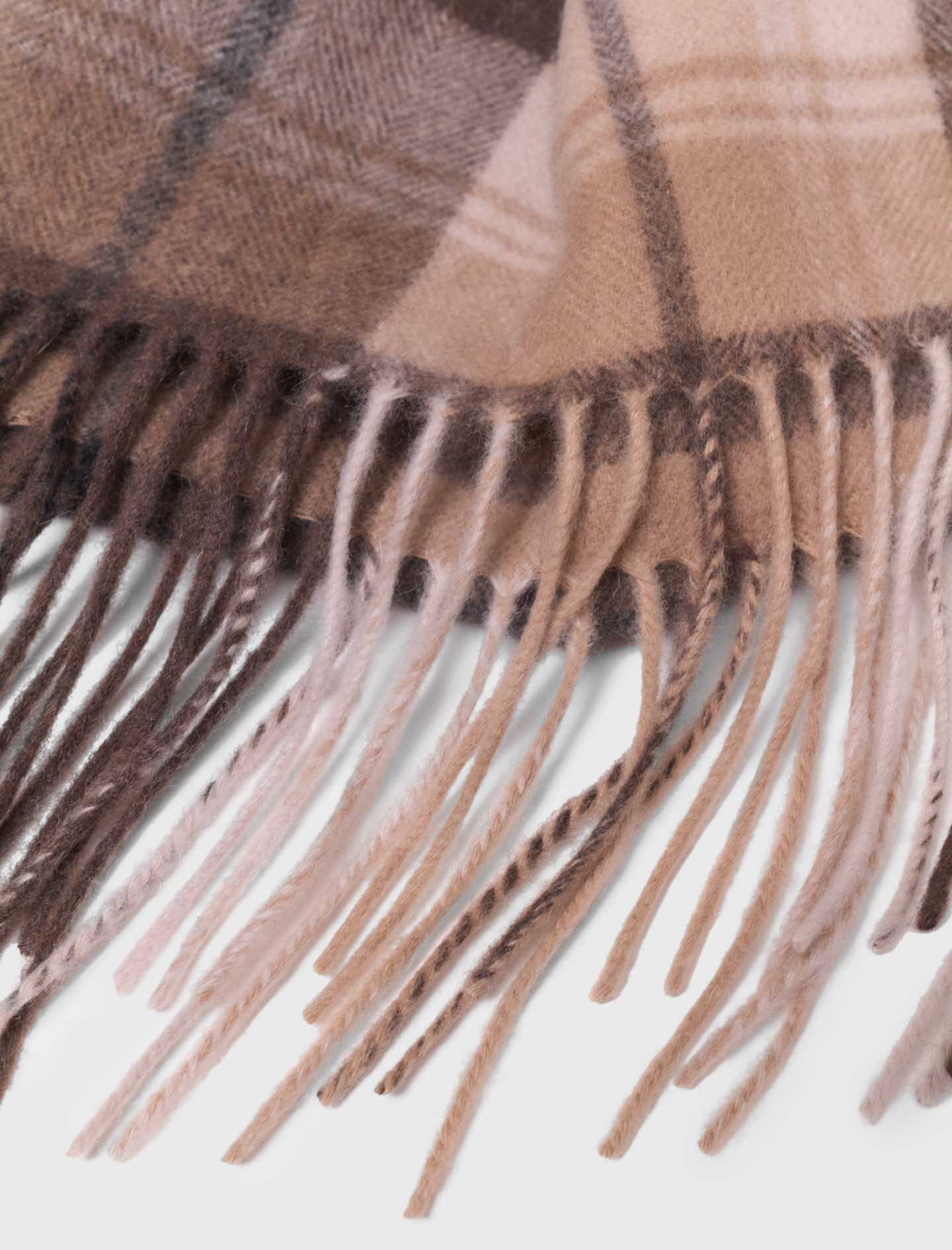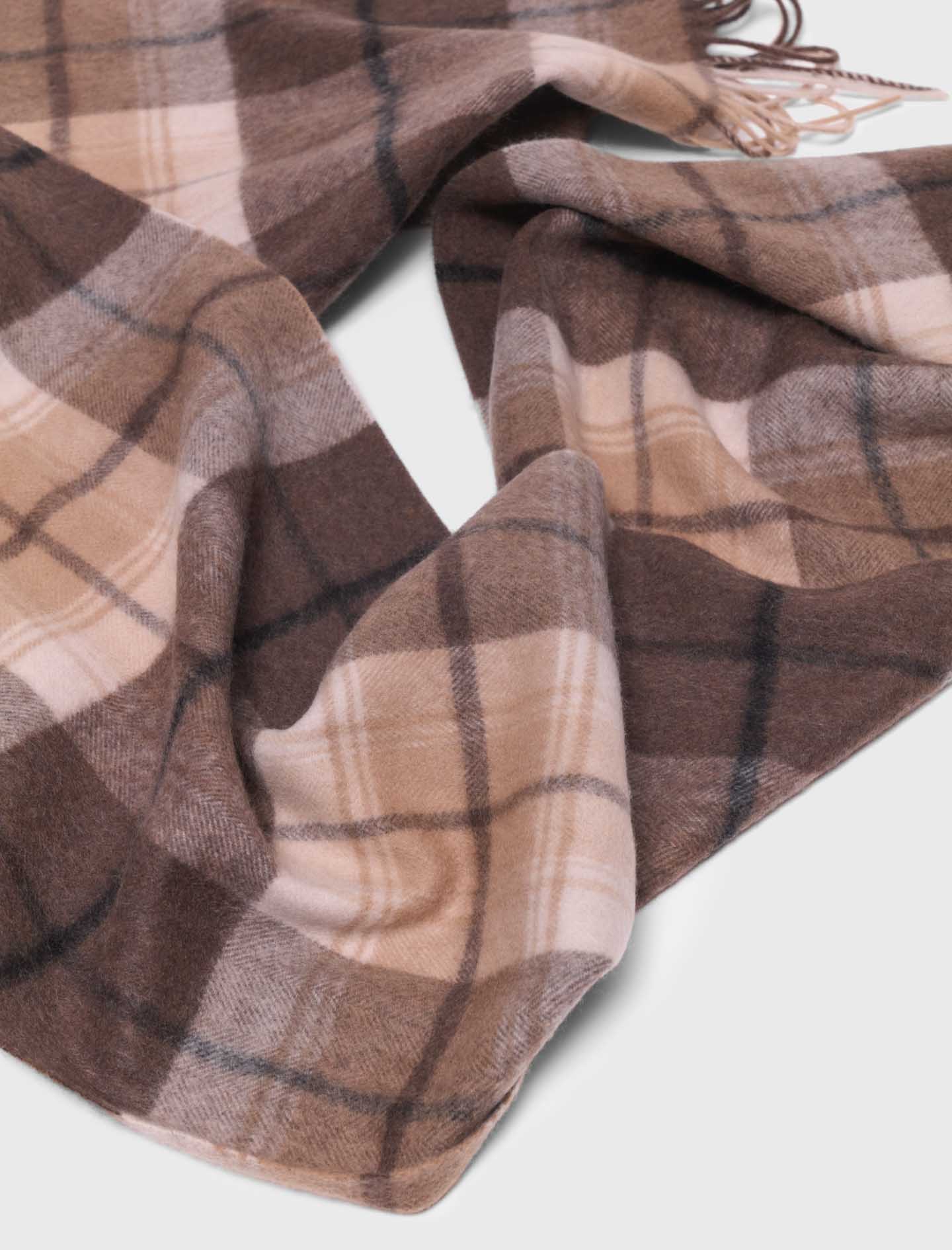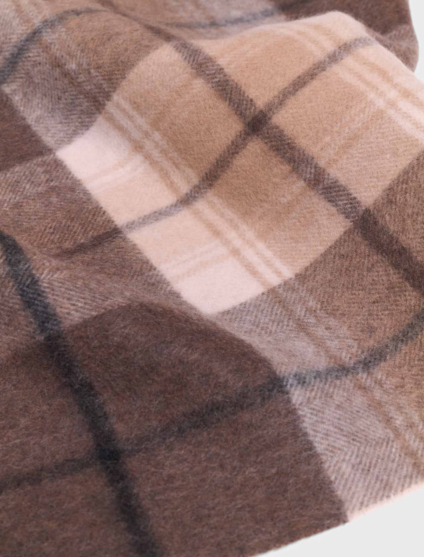 This wool scarf is alluring with its check pattern and generous size, allowing it to be draped or wrapped with ease.