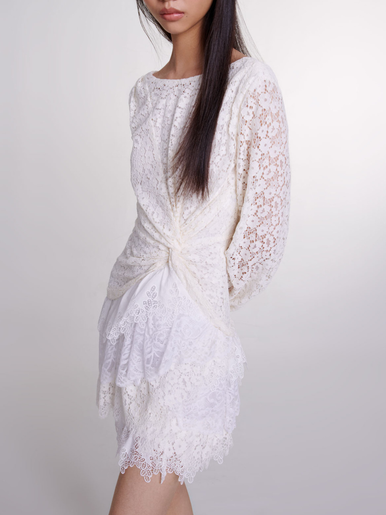 Short lace dress Tied effect Ruffled guipure.