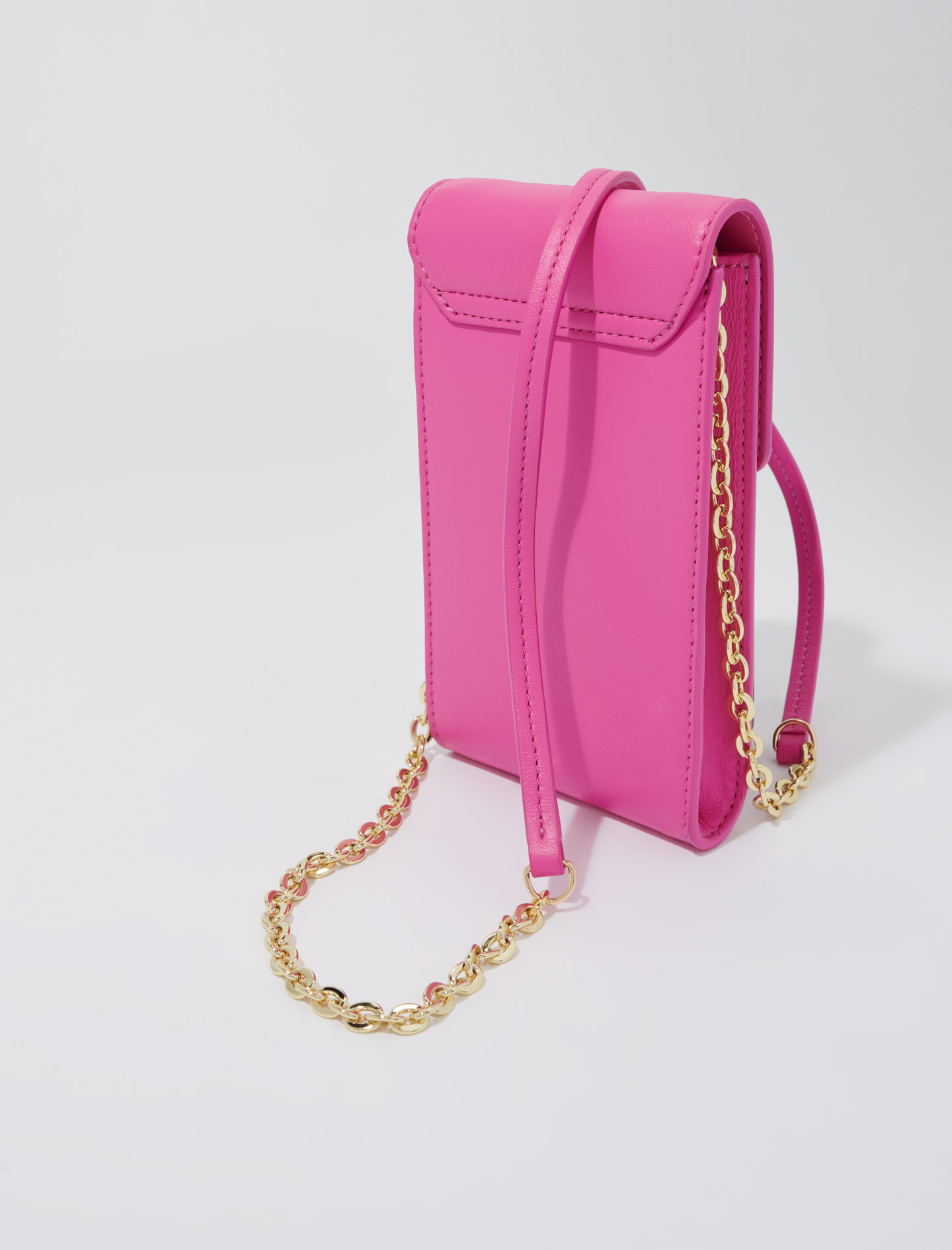 Maje Woman's leather Leather phone pouch for Spring/Summer, in color Fuchsia pink /