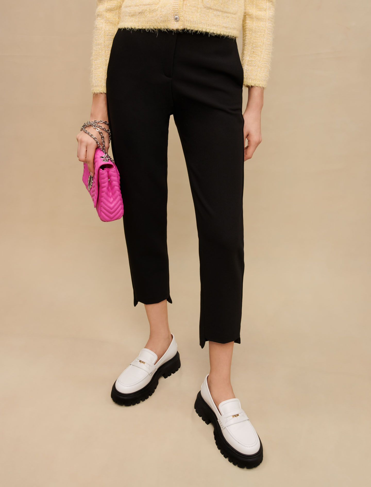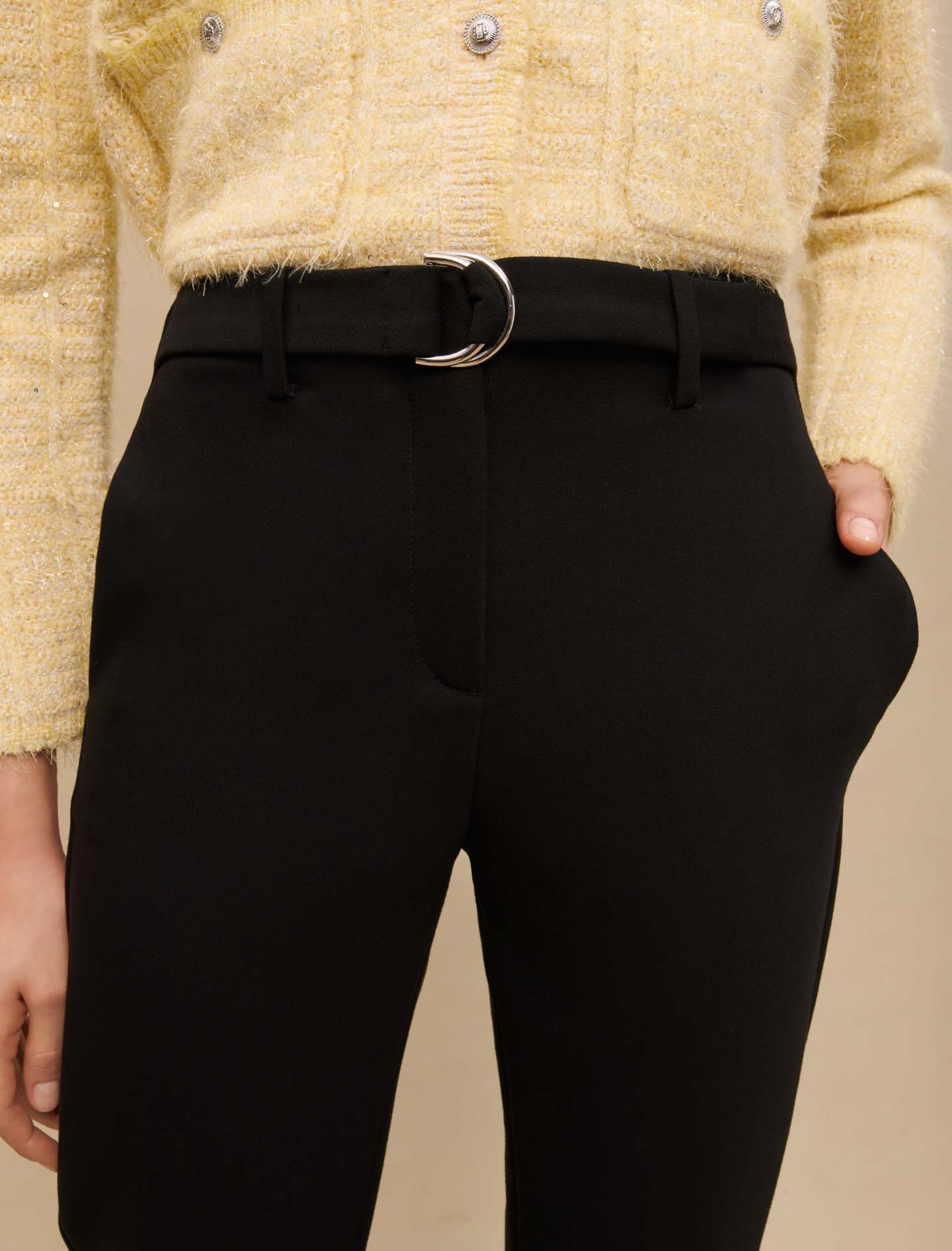 Maje polyester Essential and timeless, the black straight suit trousers are revisited in a feminine cut.