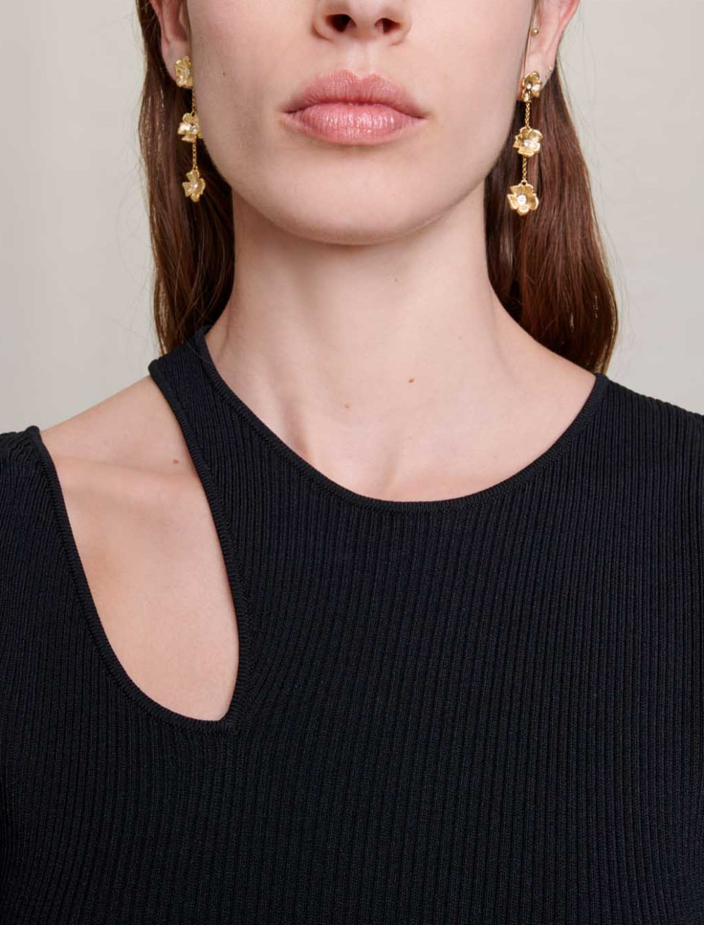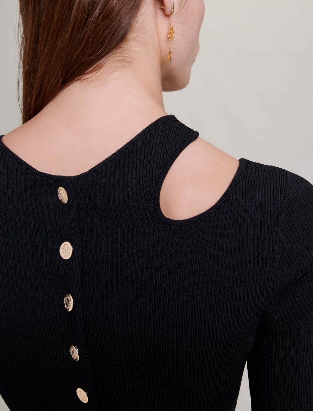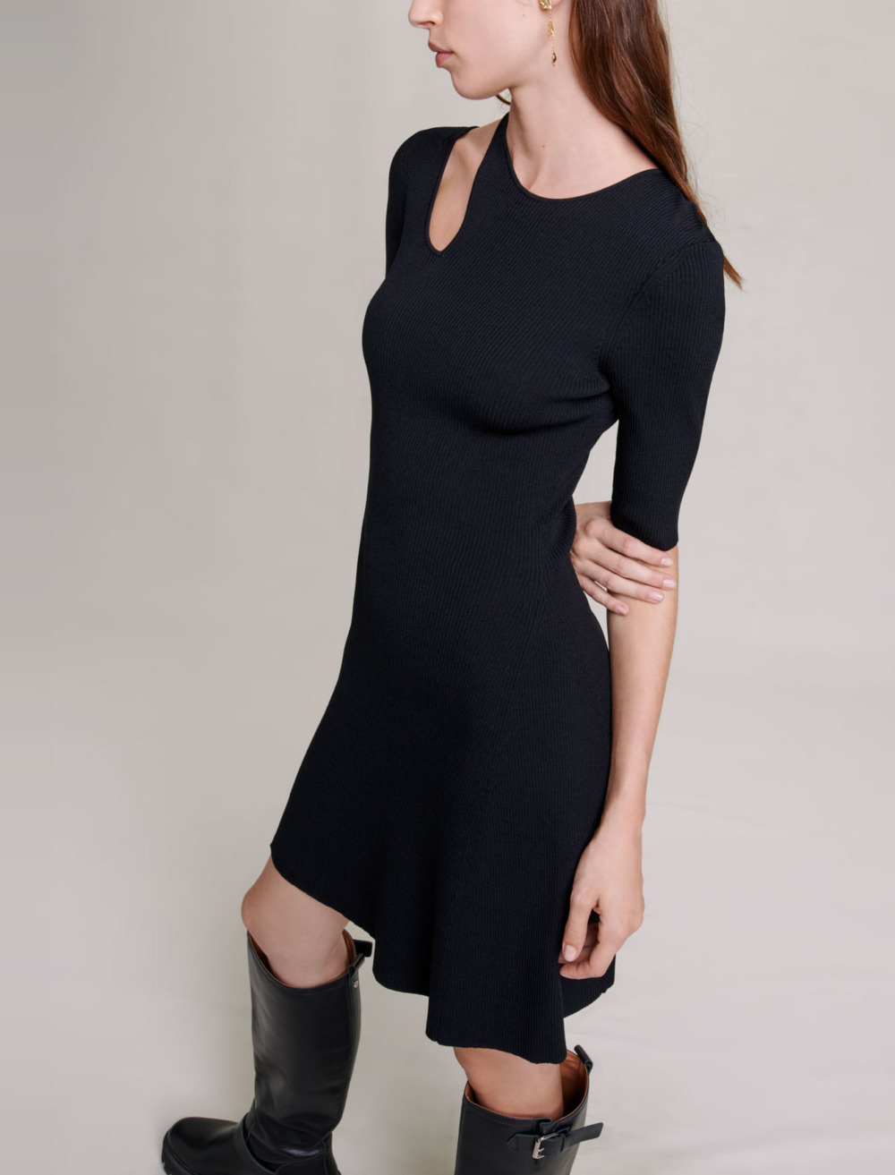Maje Woman's viscose Knit dress with cut-out at the shoulder for Fall/Winter, in color Black / Black