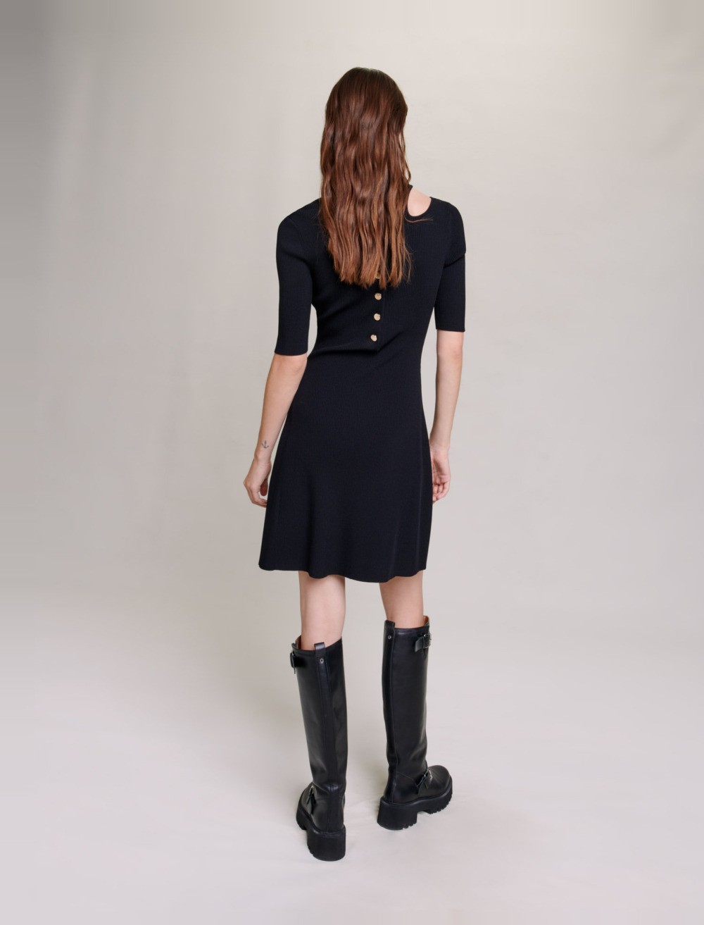 Short fitted dress Stretch knit Cut-out at the shoulder.