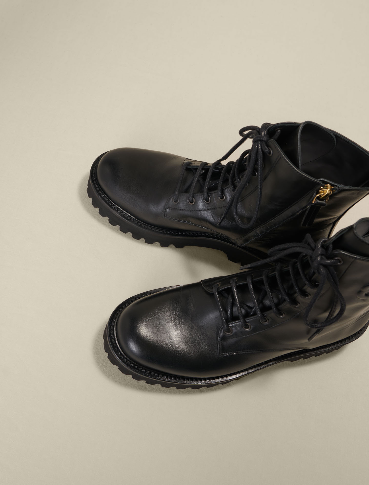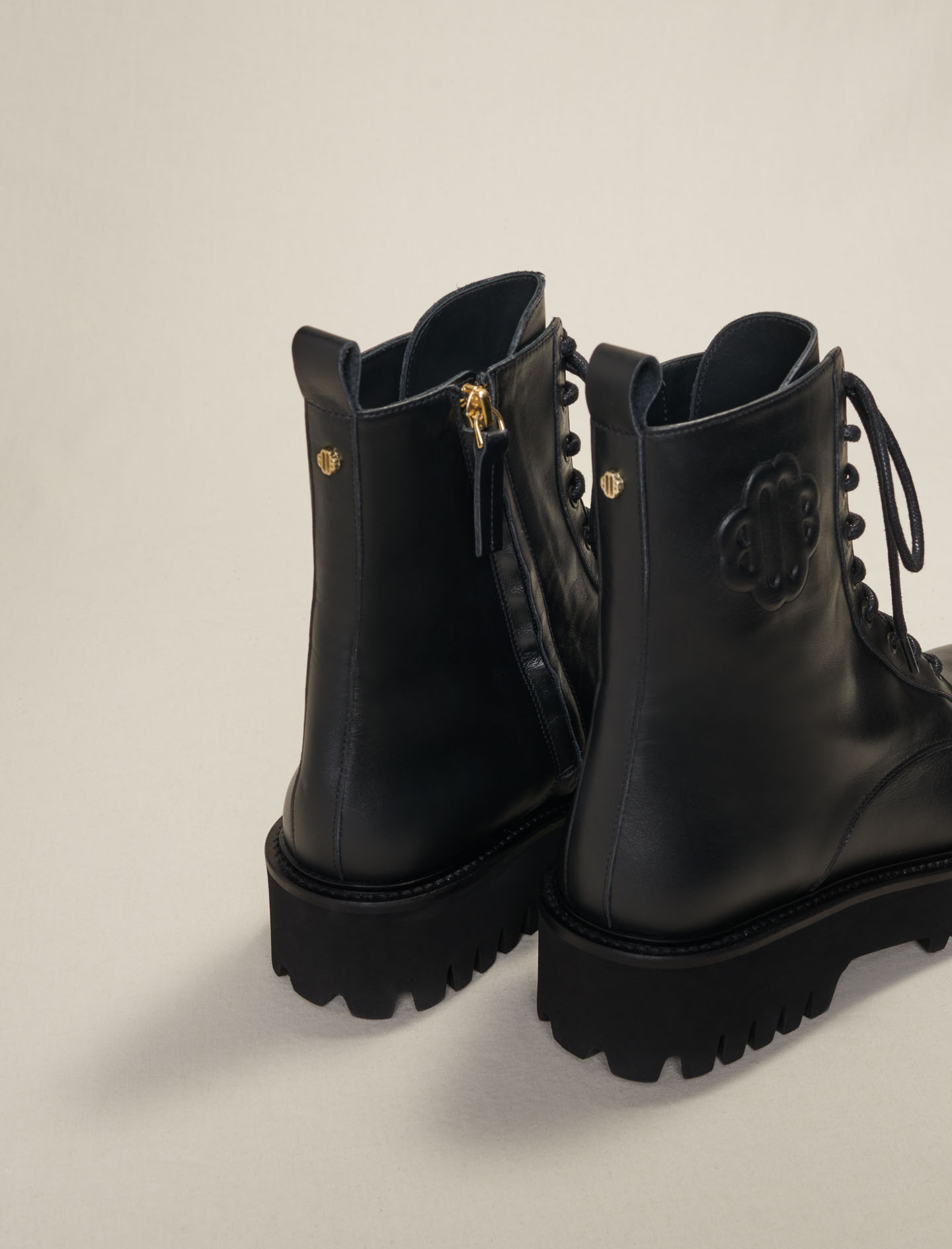 Maje leather These black leather lace-up boots are a feminine version of military boots.