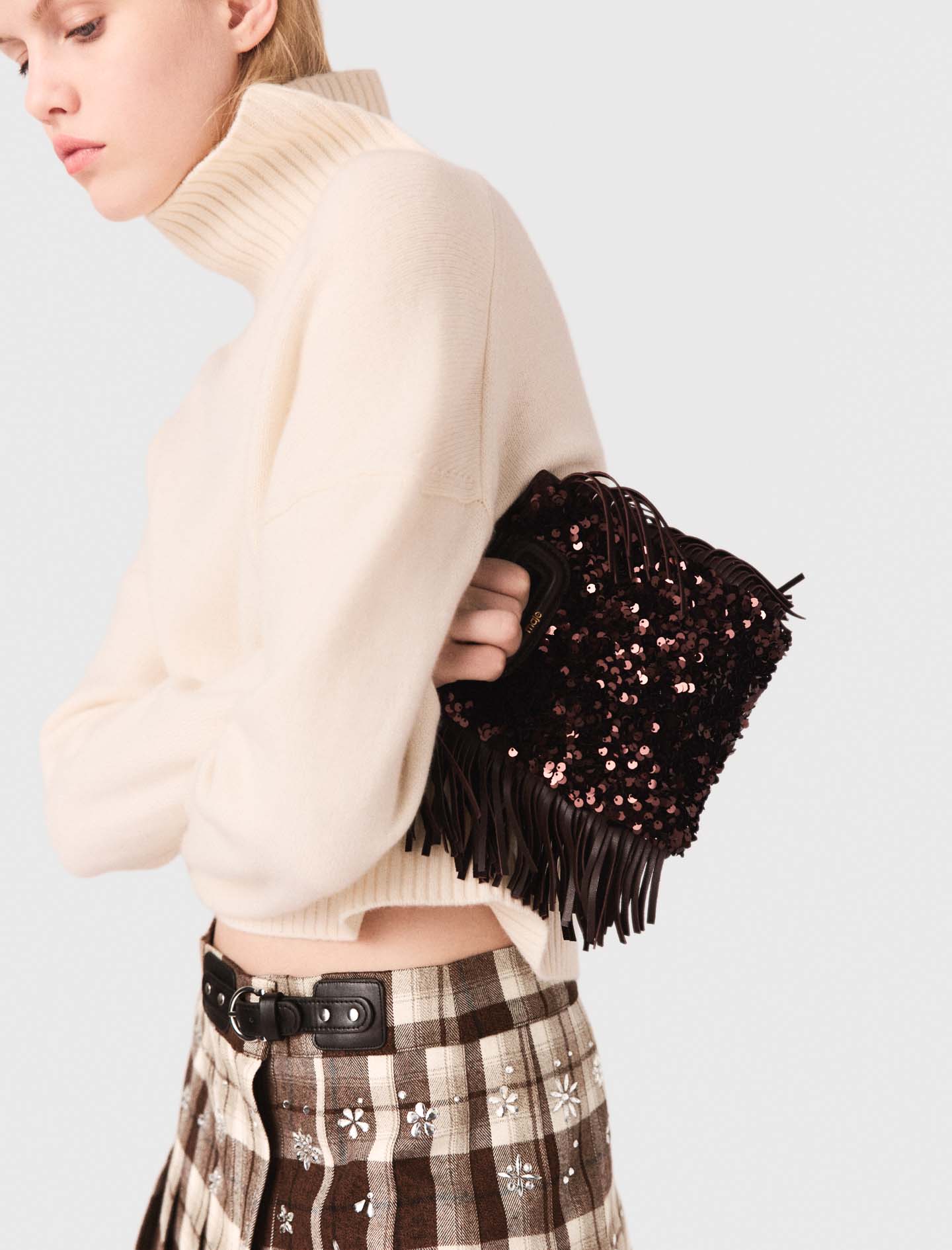 Maje Woman's polyester Sequin M mini bag for Fall/Winter, in color brown /