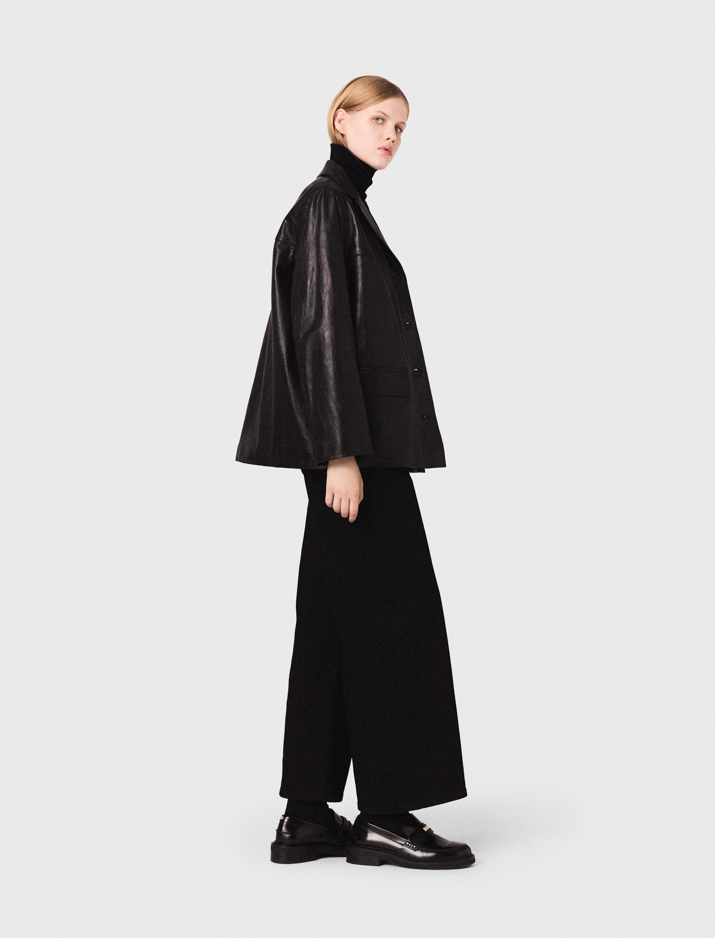 Maje leather Oversized smooth leather jacket Shirt collar Button fastening Designed for an oversized fit Leather with a raw feel and an oversized cut that evokes the boyish spirit of the Maje wardrobe.