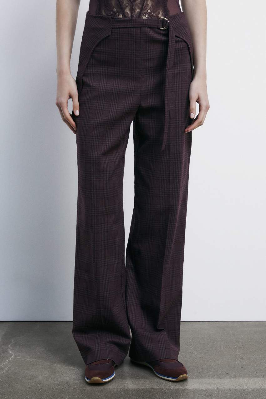 I pantaloni fluidi con motivo check accompagnano il passaggio tra le stagioni grazie al tessuto morbido in tela.