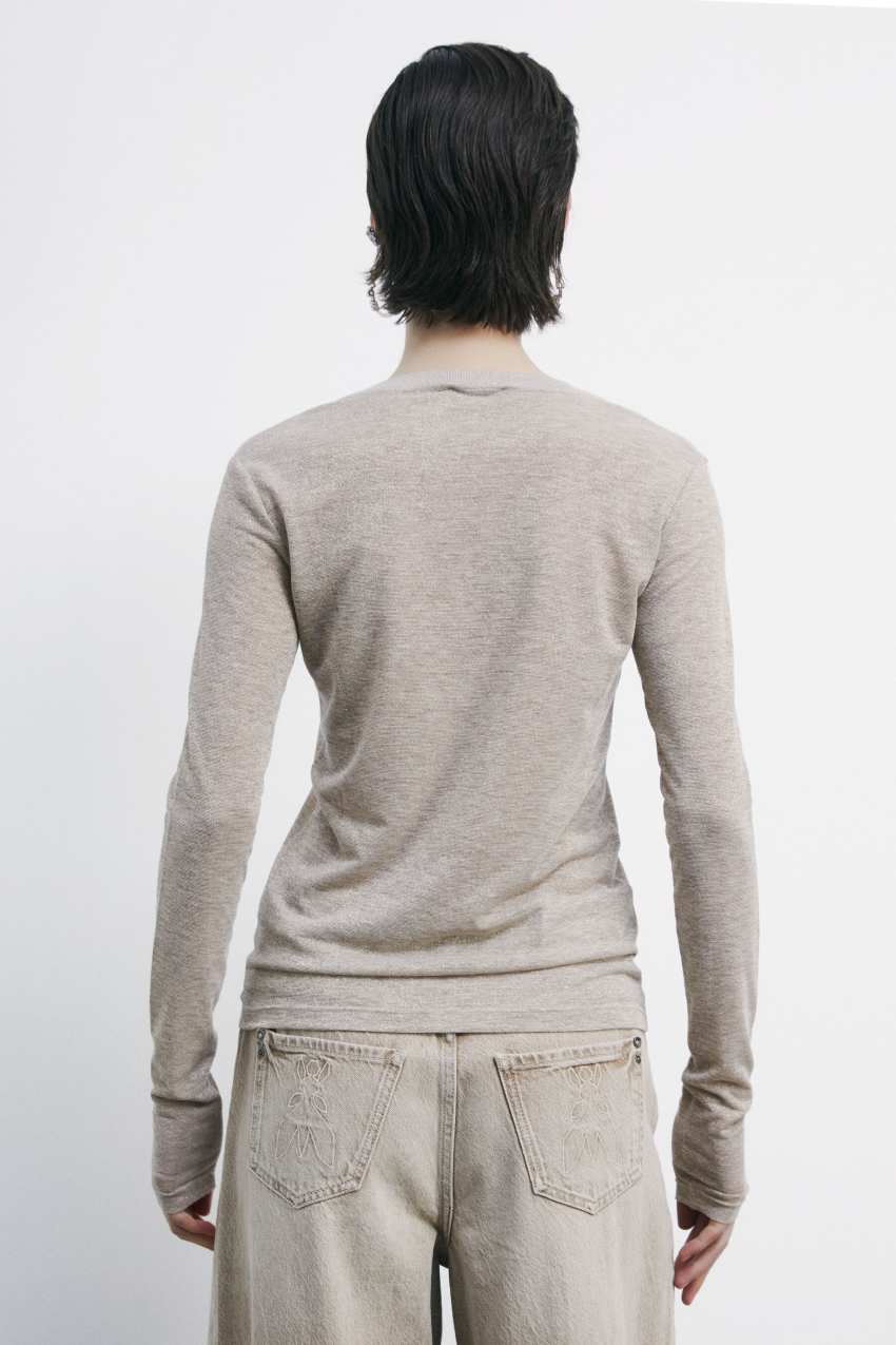 Maglia finissima dal modello serafino con lavorazione rasata del tessuto per un effetto second skin.