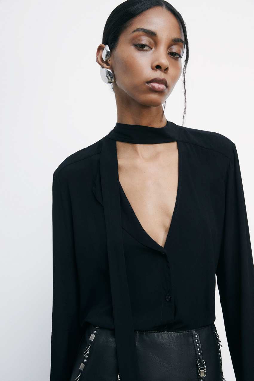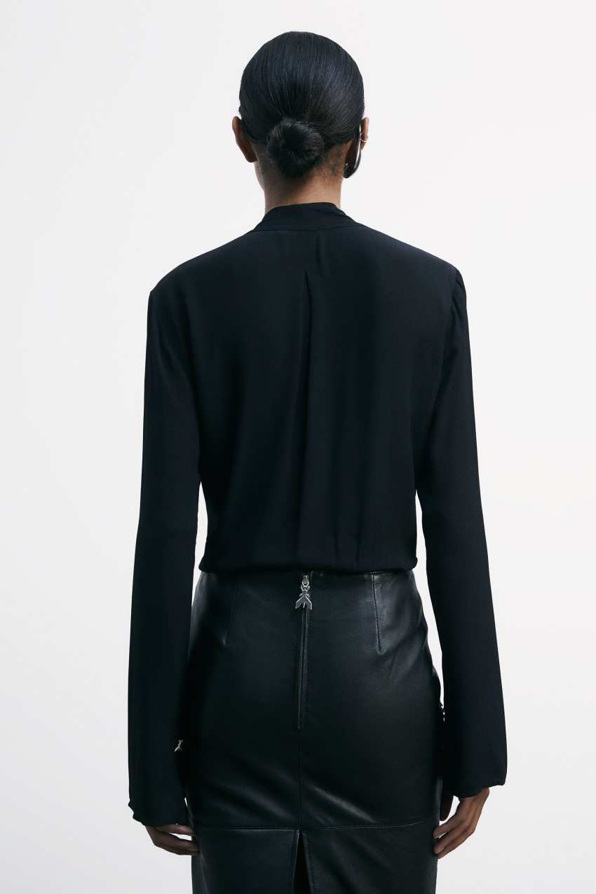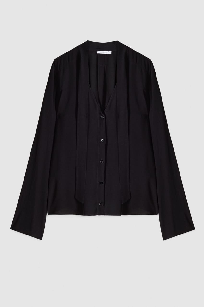 Blusa in morbida crêpe di viscosa con maniche lunghe.