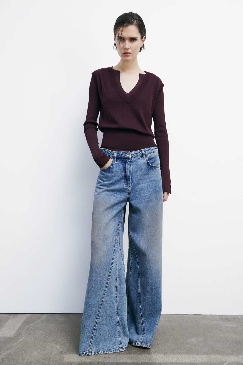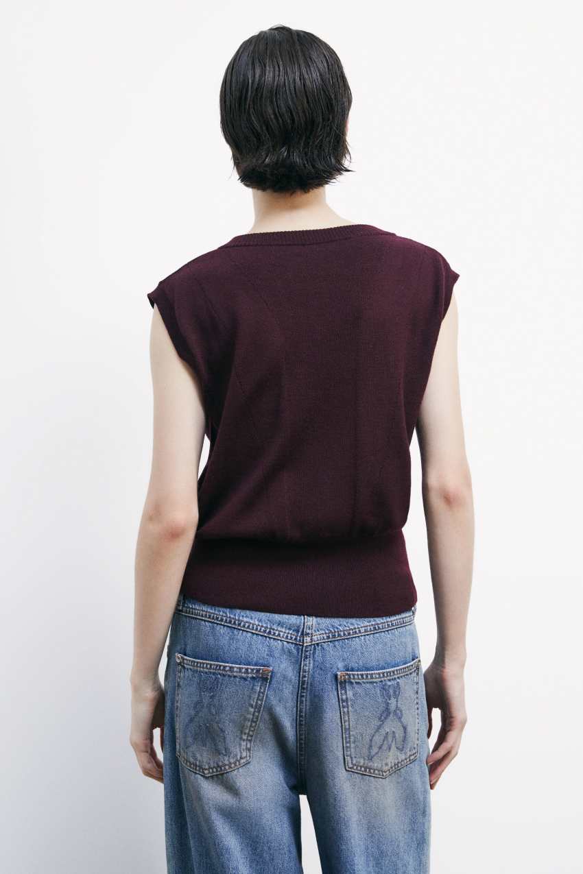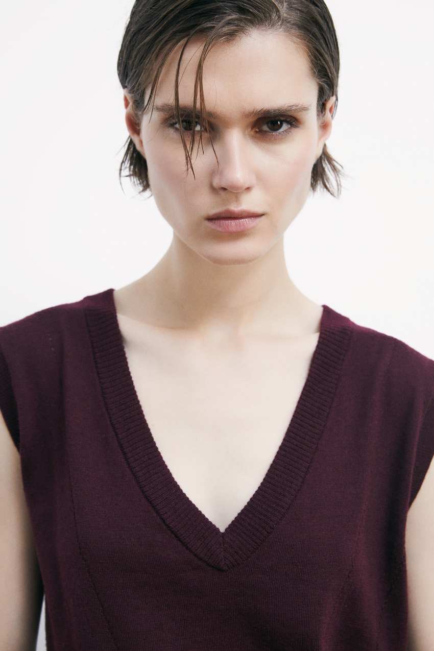 il gilet con scollo a V in pura lana è il protagonista ideale di look eclettici perfetti per la mezza stagione.