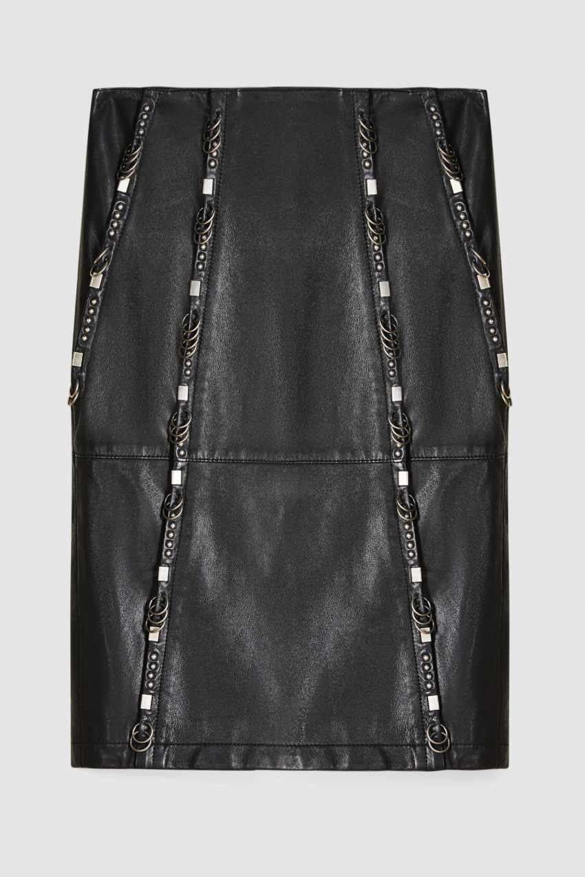 L’heritage di Patrizia Pepe si conferma nella lavorazione premium della gonna midi in nappa con innesti ricercati che scolpiscono la silhouette impreziosendone i profili.