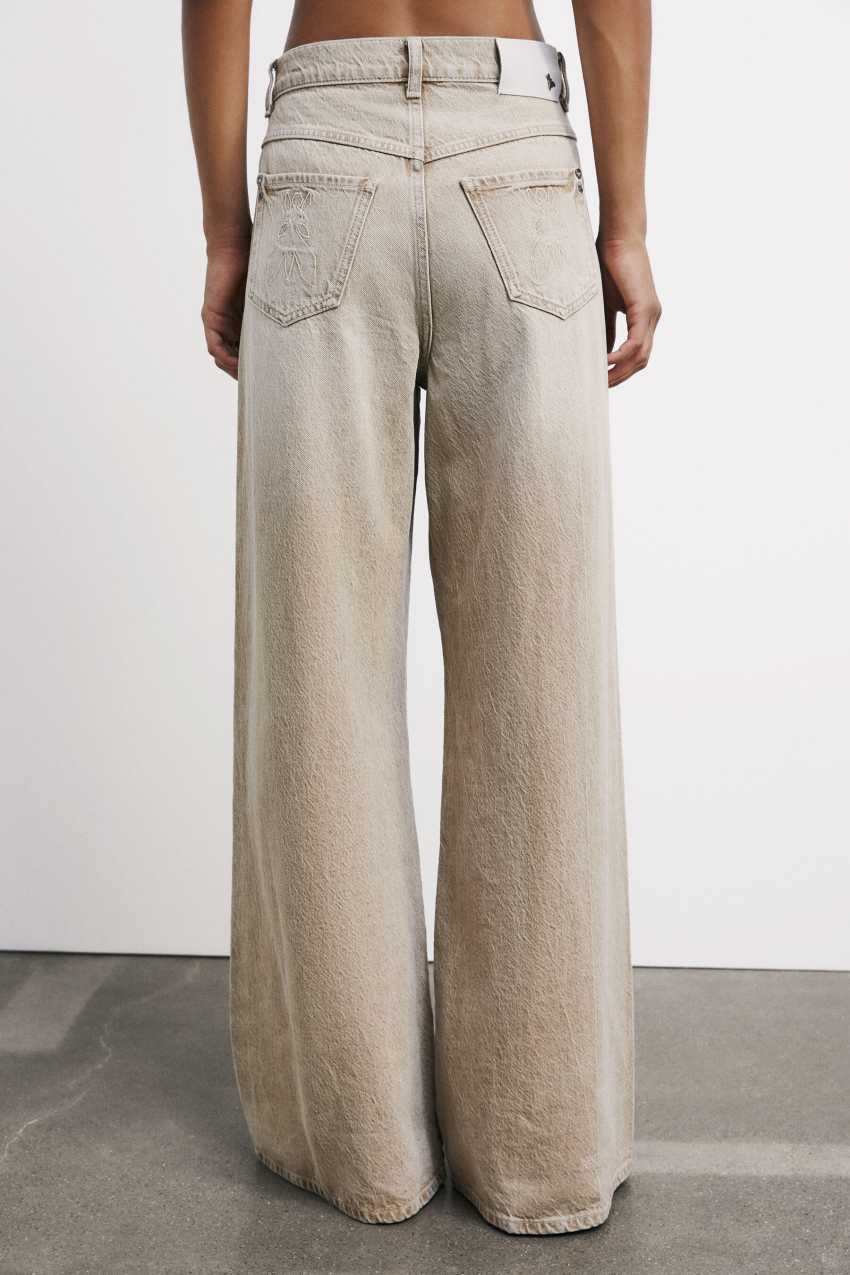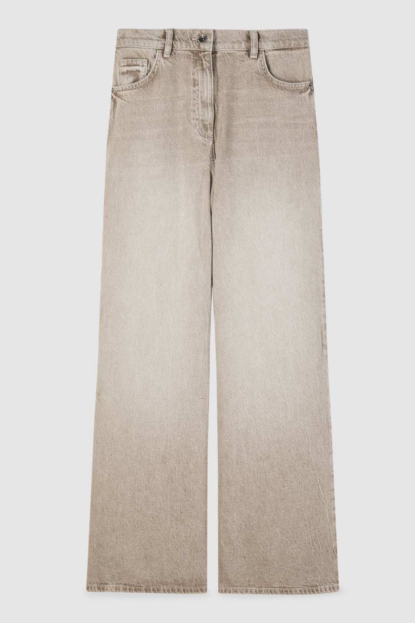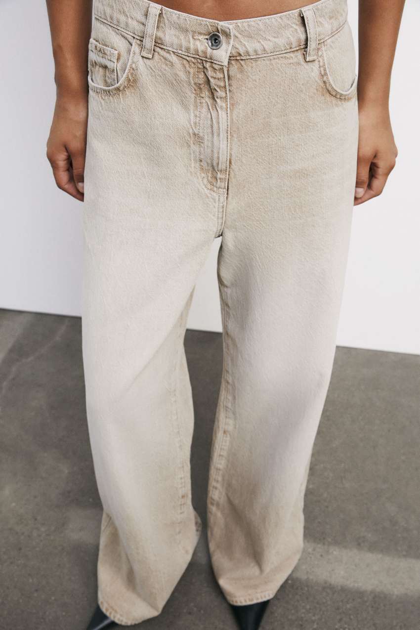 La tela denim si rinnova con un sofisticato effetto delavé e dà vita a questi jeans a vita bassa dal fit rilassato.