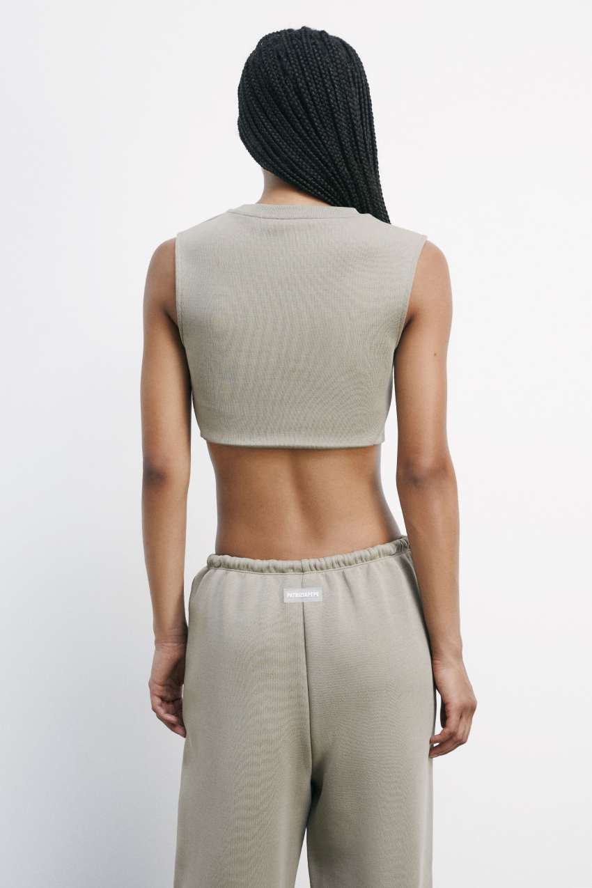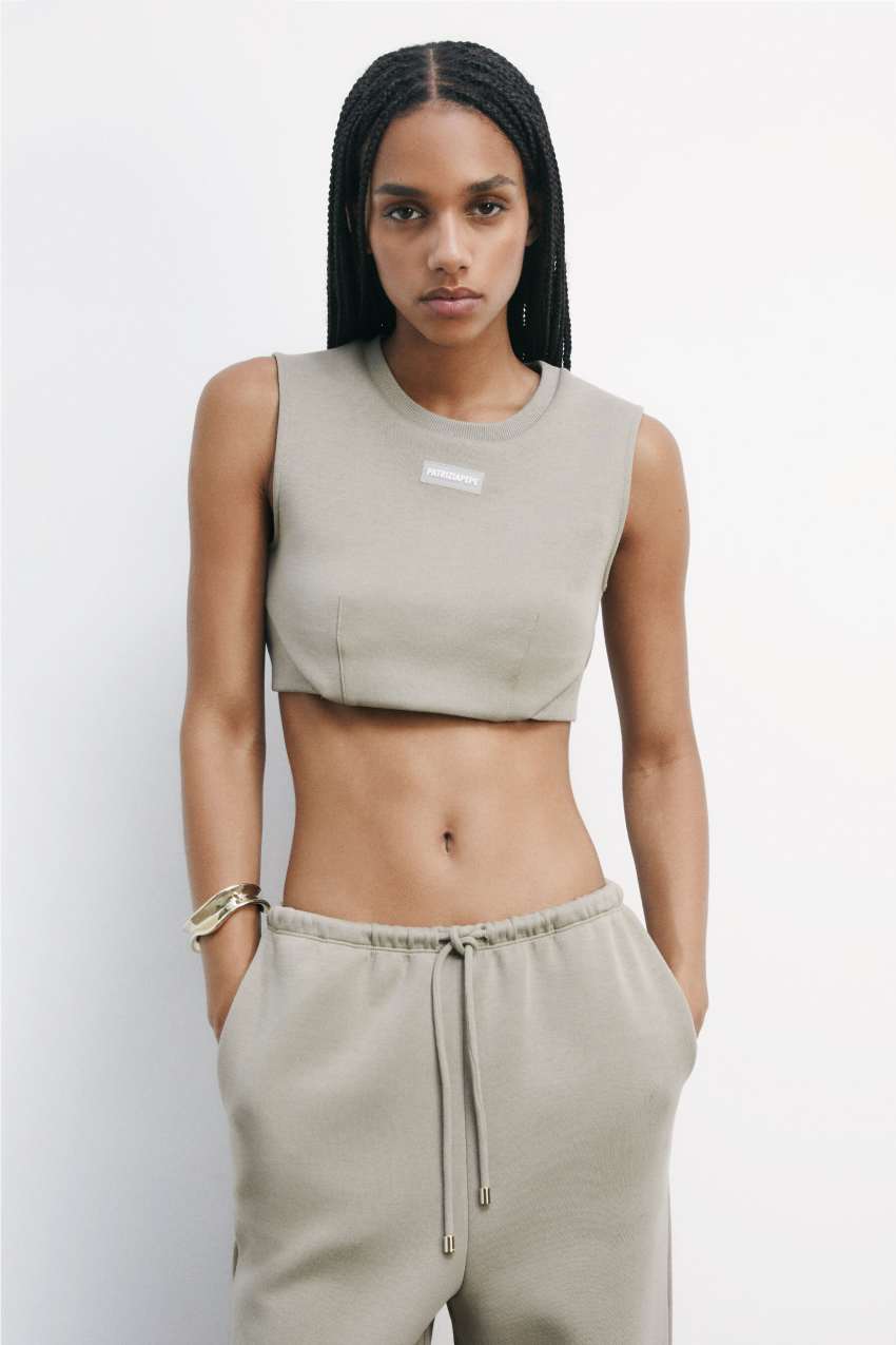 Dieses cropped Top aus softem Stretch-Neopren vereint Komfort und Style – mit Rundhalsausschnitt.