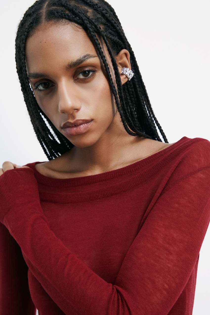 Der ultrafeine Wollpullover mit U-Boot-Ausschnitt ist ideal für moderne Layering-Looks.