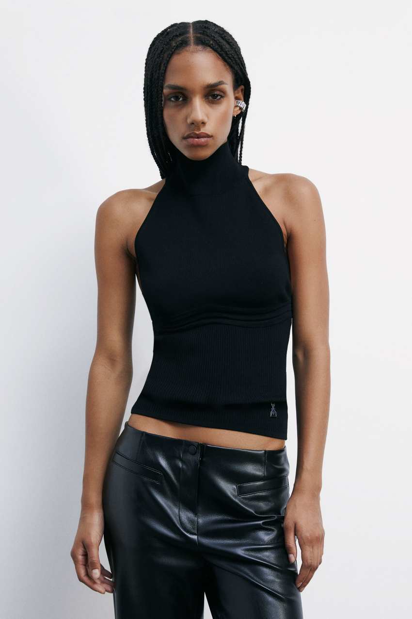 Das ärmellose Stricktop mit Rollkragen ist ein vielseitiges Keypiece.