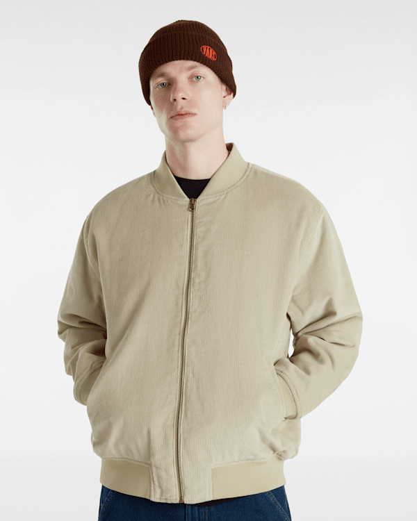 Tessuto in 100% cotone Bomber in velluto a coste con fodera trapuntata e grafica sublimatica Collo e polsini a coste Ricamo 5-checkerboard Etichetta Vans® Skateboardin