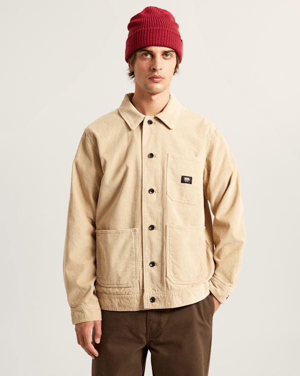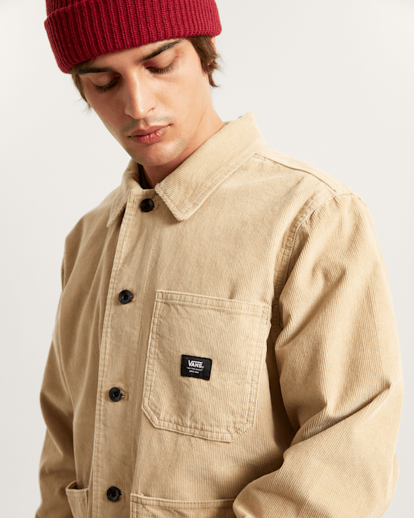 La giacca Drill Chore Corduroy combina la resistenza dell'abbigliamento da lavoro con l'inconfondibile stile Vans per una versatilità senza tempo.