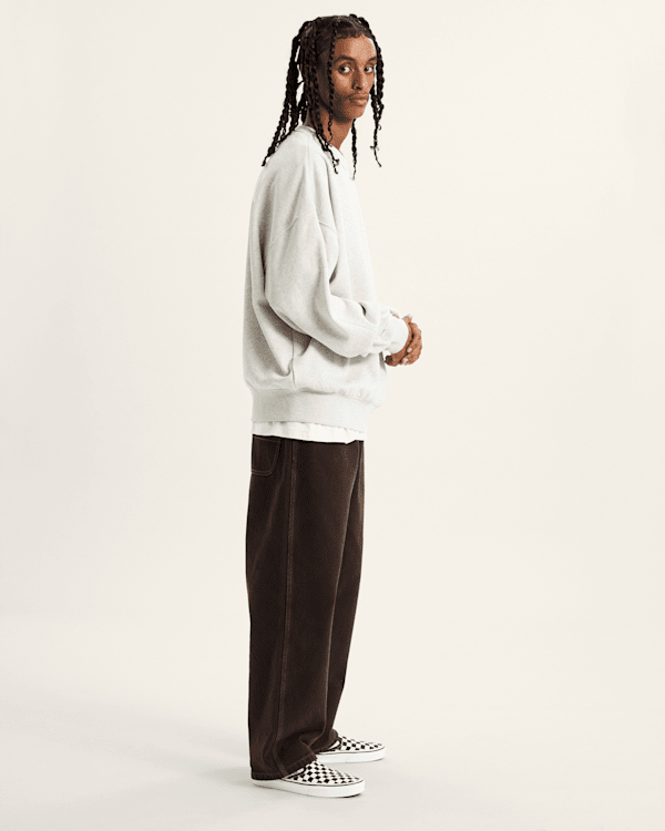 Das Premium Standard Crew Sweatshirt ist ein langärmeliger Pullover mit gerippter Einfassung oben entlang der Schulter bis zum seitlichen Ärmel, einer farblich abgestimmten Logostickerei auf der Brustmitte und einem gewebten Innenetikett.