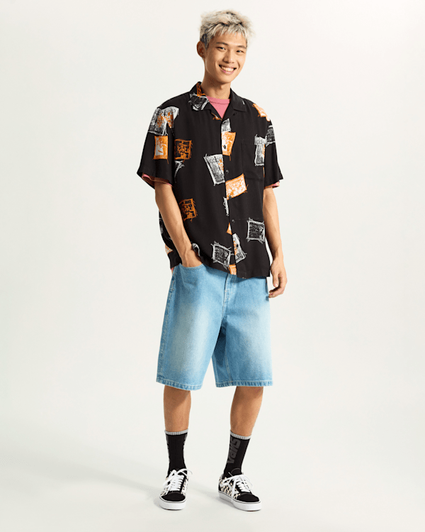 Mit Anspielungen auf die Zine-Kultur und Prints im Button-Down-Stil der 90er Jahre sorgen die Dillon Woven Hemden für einen starken grafischen Akzent und eignen sich perfekt zum Kombinieren oder solo.