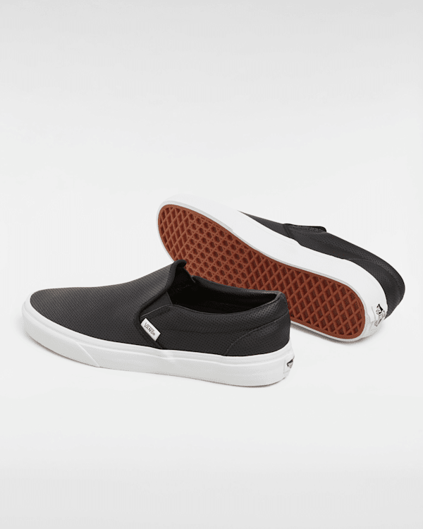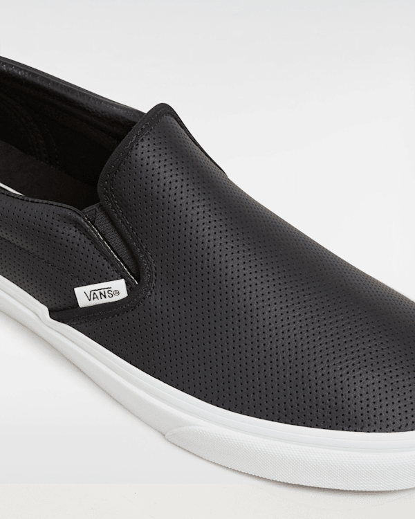 The Perf Leather Classic Slip-On features sturdy low profile slip-on leather uppers, padded collars, elastic side accents, and signature rubber waffle outsoles.