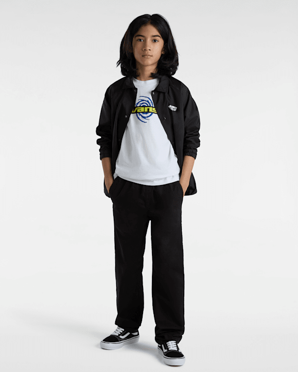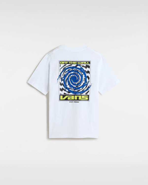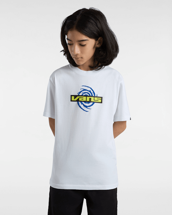 The Kids Galaxy T-Shirt is a short sleeve crewneck tee made from a heavier weight cotton and features a screenprinted Vans logo on the front and a swirling galaxy inspired graphic on the back.