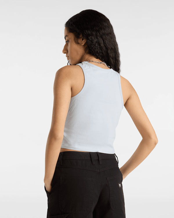 The Vans Varsity CC Racer Tank is a sleeveless top featuring the Vans logo on the front.