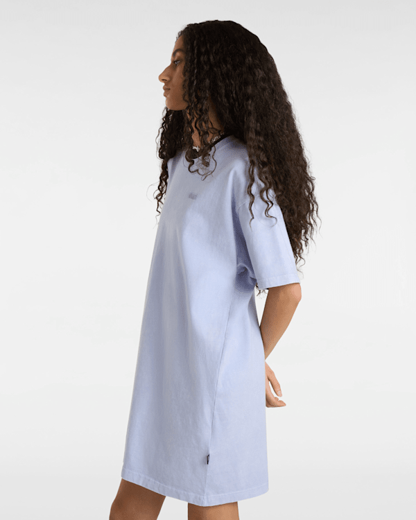 The Vans Cosmic Wash Dress is a jersey t-shirt dress with a crew neck, short sleeves and the Vans logo on the left chest.