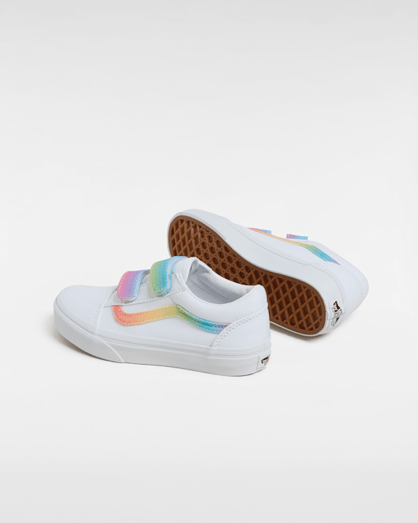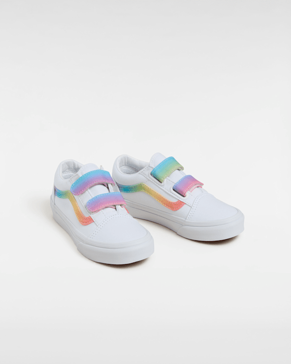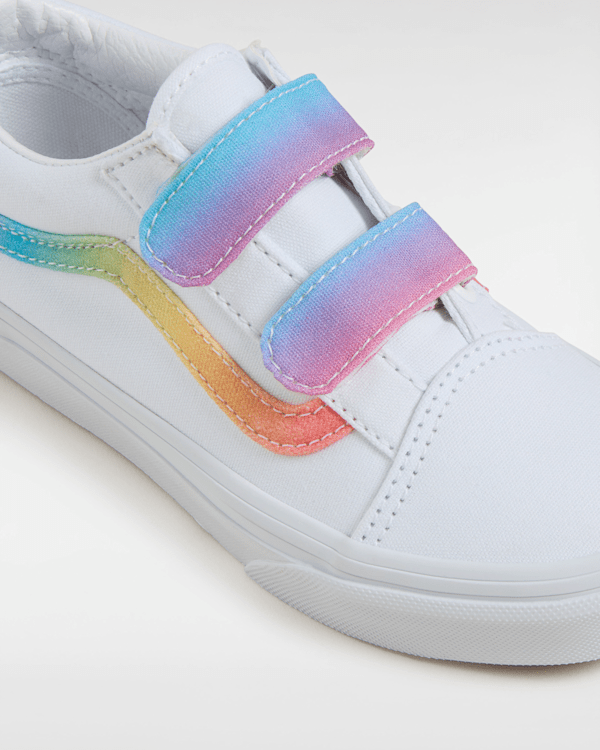 Strap Closures Create a Kid-Friendly Fit on this Iconic Sidestripe Shoe The Kids Old Skool V reimagines our iconic Sidestripe shoe by swapping traditional laces for double hook-and-loop closures.
