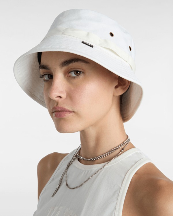 Chill out in the Undertone Bucket Hat, a classic casual hat in a wear-with-anything neutral tone featuring a stylin' Vans® clamp label.