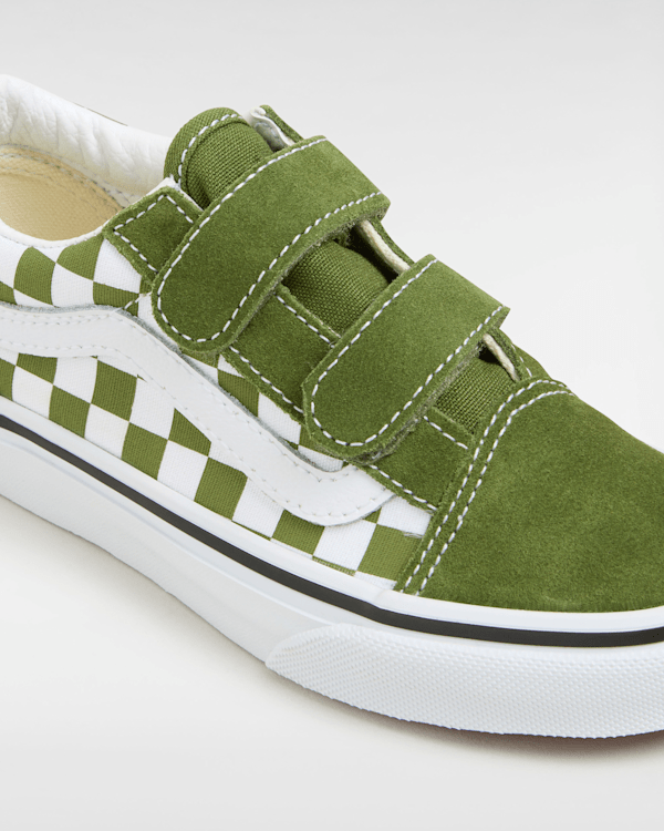 Strap Closures Create a Kid-Friendly Fit on this Iconic Sidestripe Shoe The Kids Old Skool Hook And Loop Shoes reimagine our iconic Sidestripe shoe by swapping traditional laces for double hook-and-loop closures.