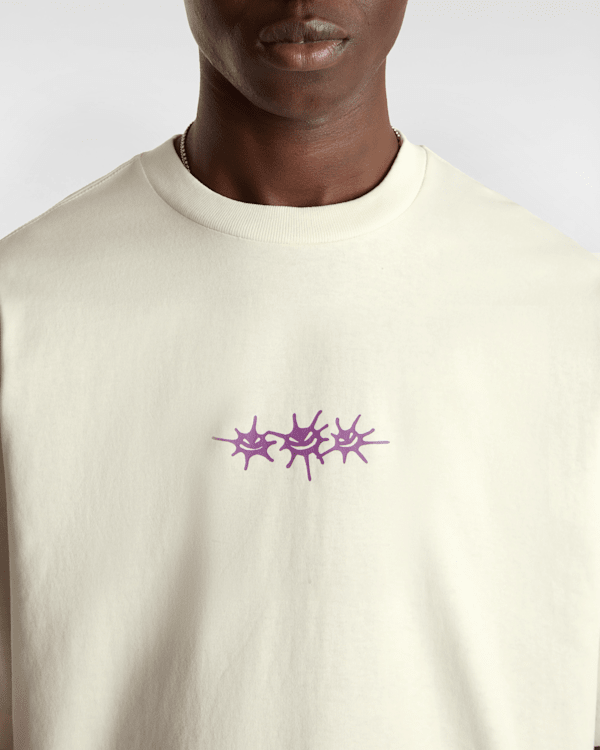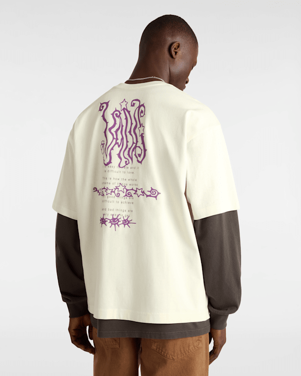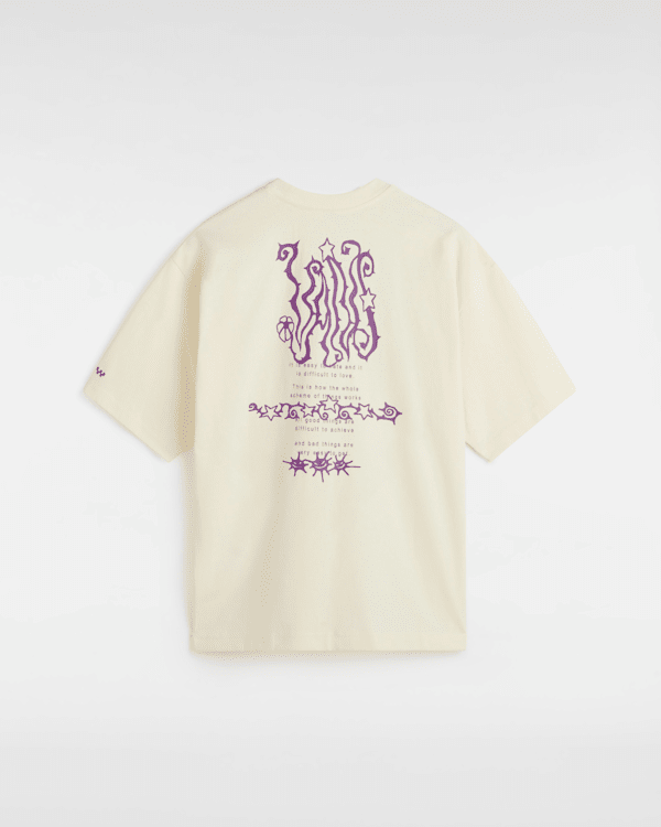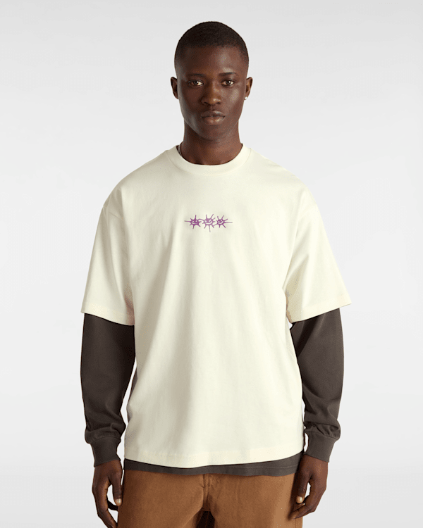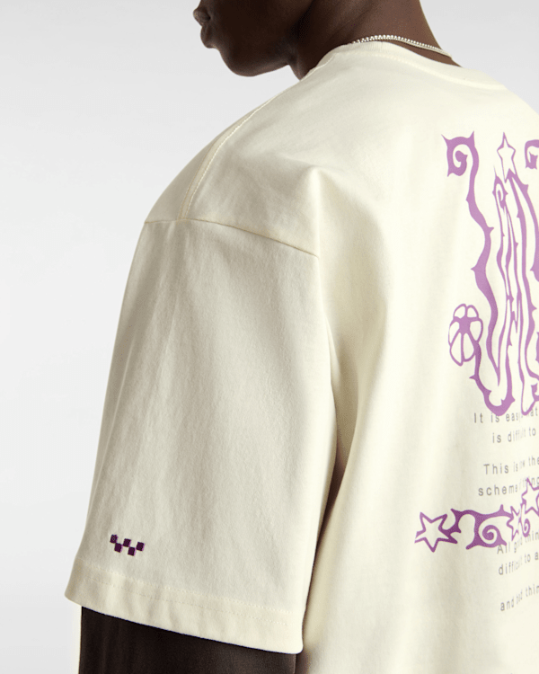100% Cotton fabric Short sleeve crew neck T-shirt Screenprinted graphic at front and back 5-Checkerboard embroidery detail Vans® Skateboarding labeling Loose fit