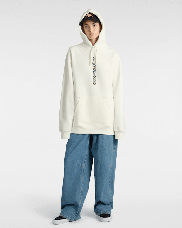 70% Cotton, 30% Polyester fabric Brushed back French pullover Front graphic screen print 5-Checkerboard embroidery detail Vans® Skateboarding labeling Baggy fit