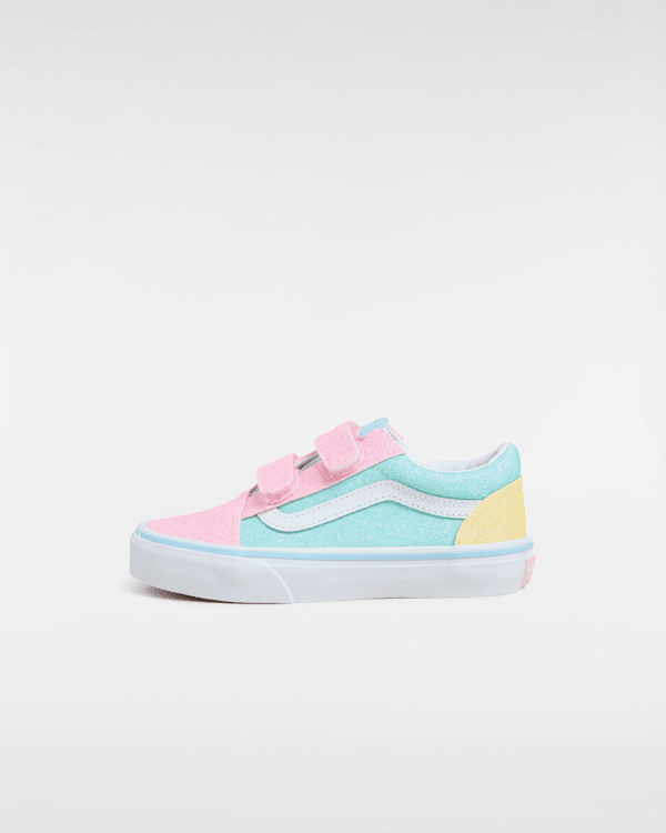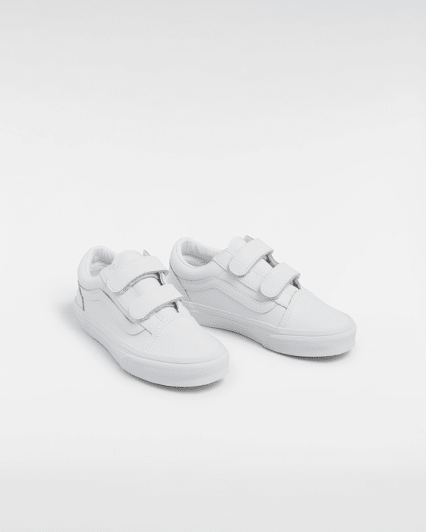 Strap Closures Create a Kid-Friendly Fit on this Iconic Sidestripe Shoe The Kids Old Skool V Classic Tumble reimagines our iconic Sidestripe shoe by swapping traditional laces for double hook-and-loop closures.