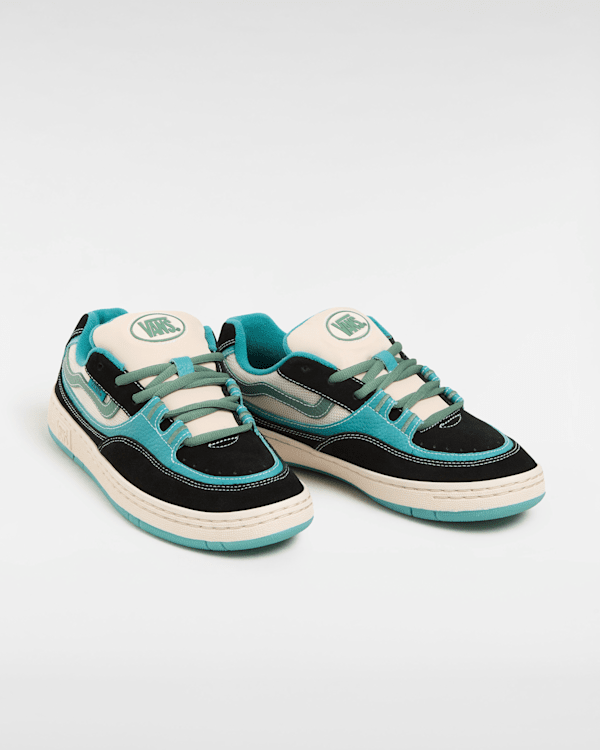 Obscure archive 90s skate shoe Suede and canvas uppers Layering of panels with toe cap and mudguard Modernised mid-90s cupsole Molded tongue branding